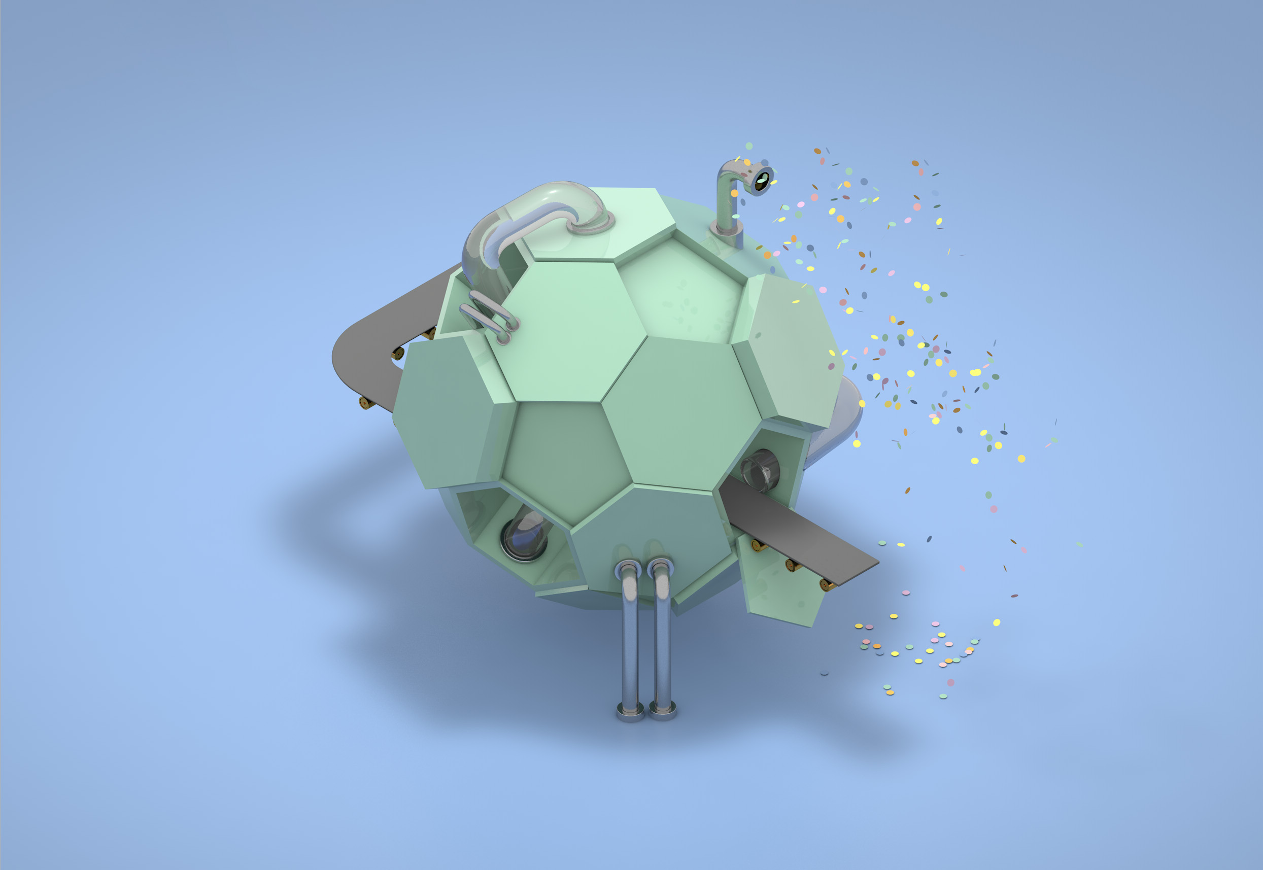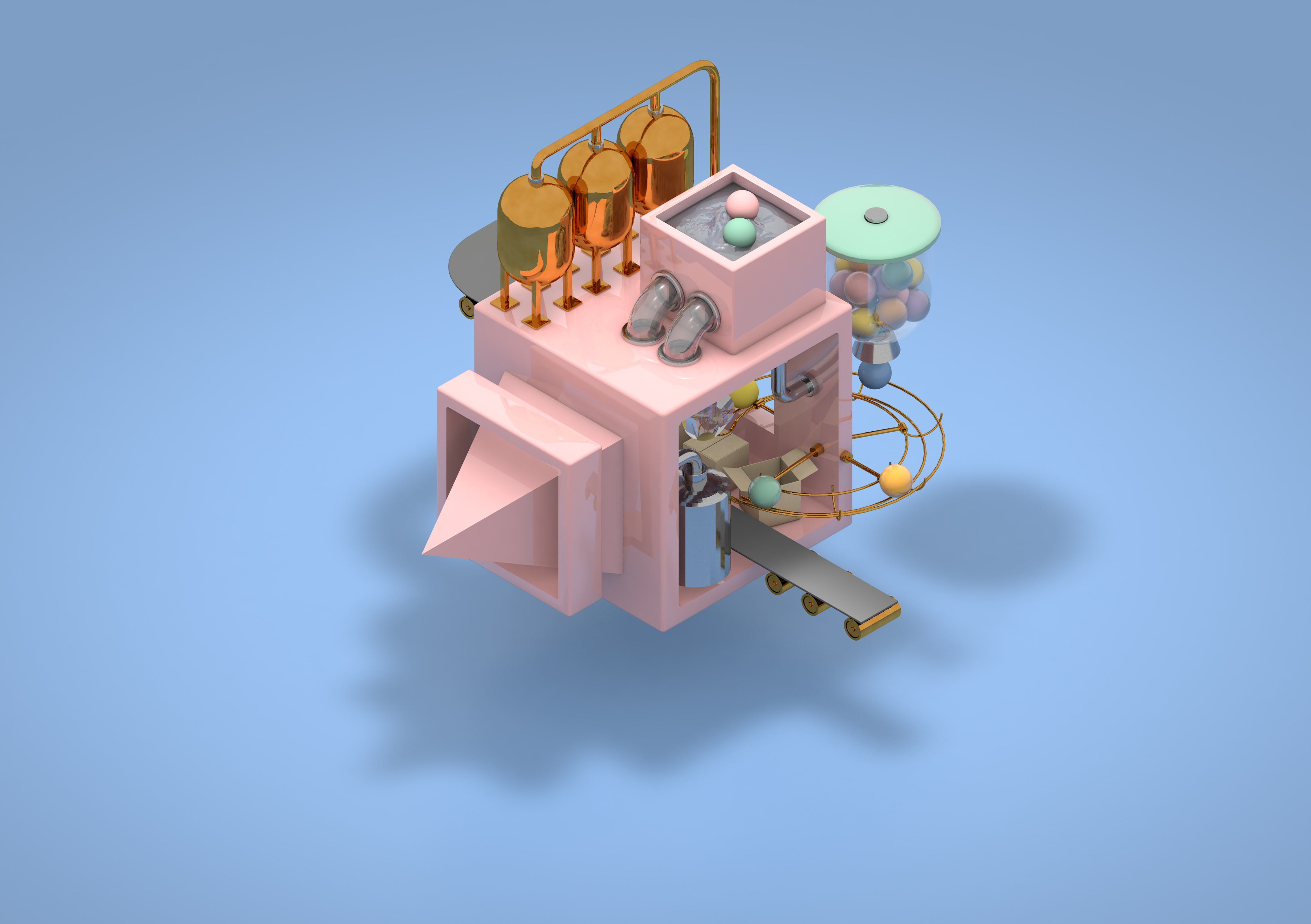 Ideen für eine Parallelwelt im Candy-Look — mit einer wohldosierten Portion Surrealismus. Die „Phantastischen Maschinen“ waren eine Idee für einen Kunden, die nicht realisiert wurde. Angelegt zwischen Spielzeug und geheimnisvoller Funktion scheinen die gerenderten Objekte Gadgets einer unbestimmbaren Zukunft zu sein. Sie verweigern sich dem rationalen Blick und den Fragen „Was ist das?“, „Wozu dient das?“, sie lassen Interpretationsräume offen und machen deshalb Lust auf mehr.