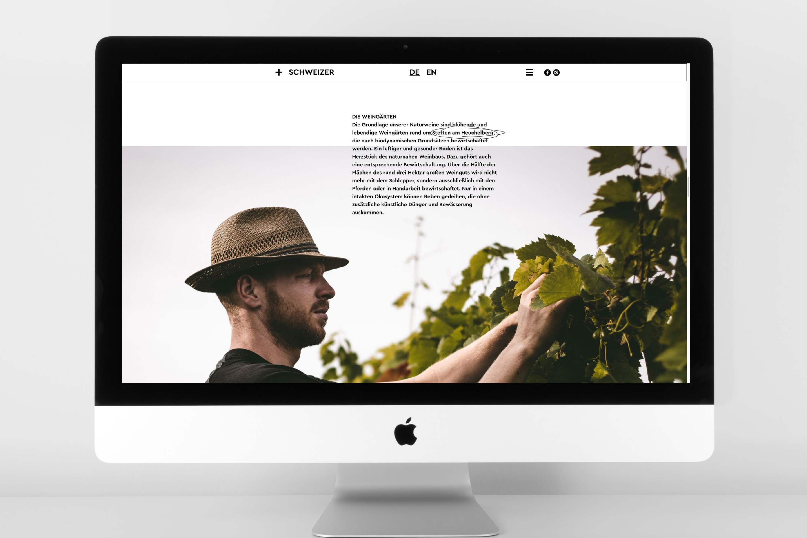 Reduziert auf das Maximum: Die Webpräsenz des auf Naturweine spezialisierten jungen Weinguts Daniel Schweizer stellt sich puristisch und direkt dar. Text und Fotografie bilden die Story, dazu eine klare Typografie, die das eigenwillige Konzept des Weinguts unterstreicht.