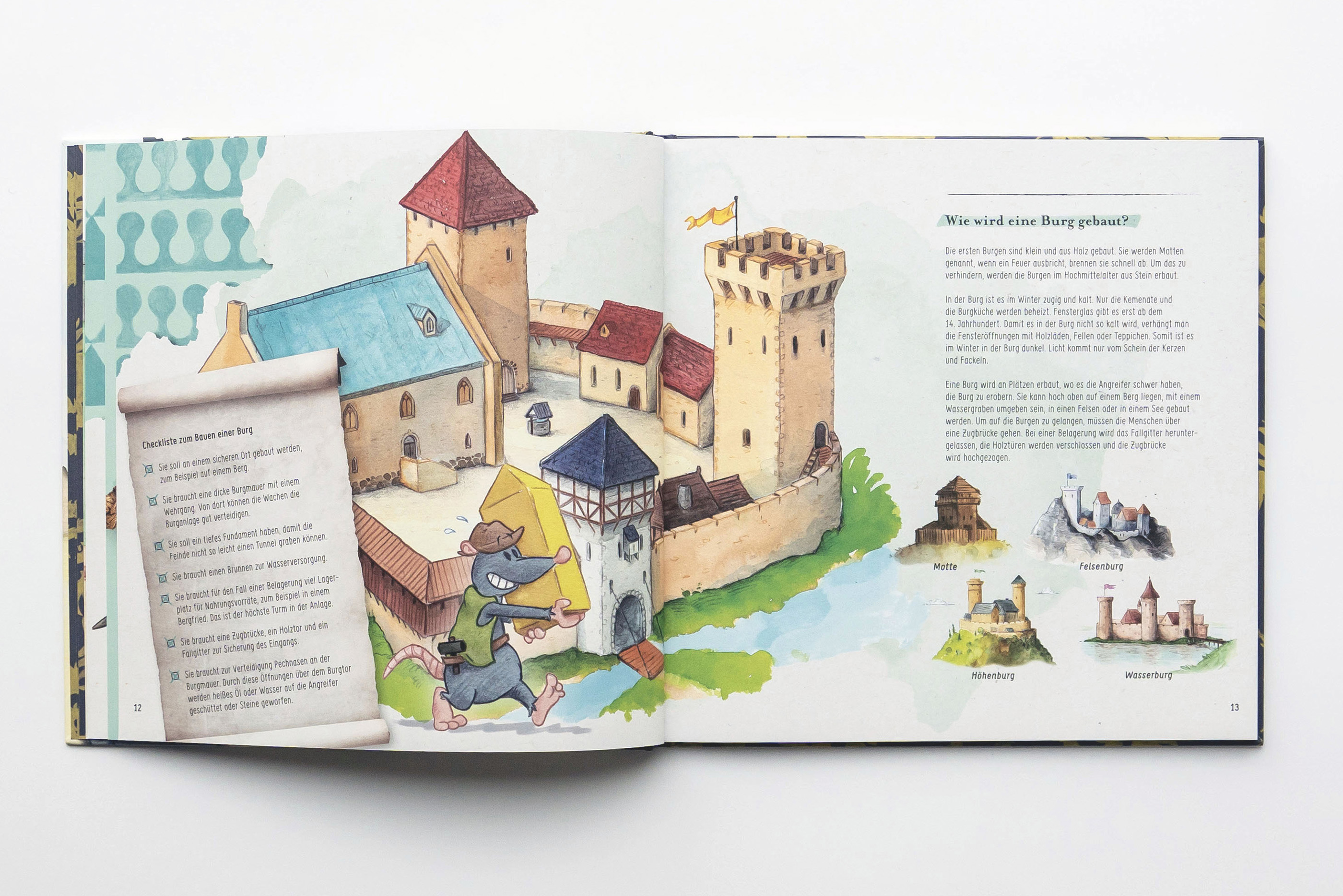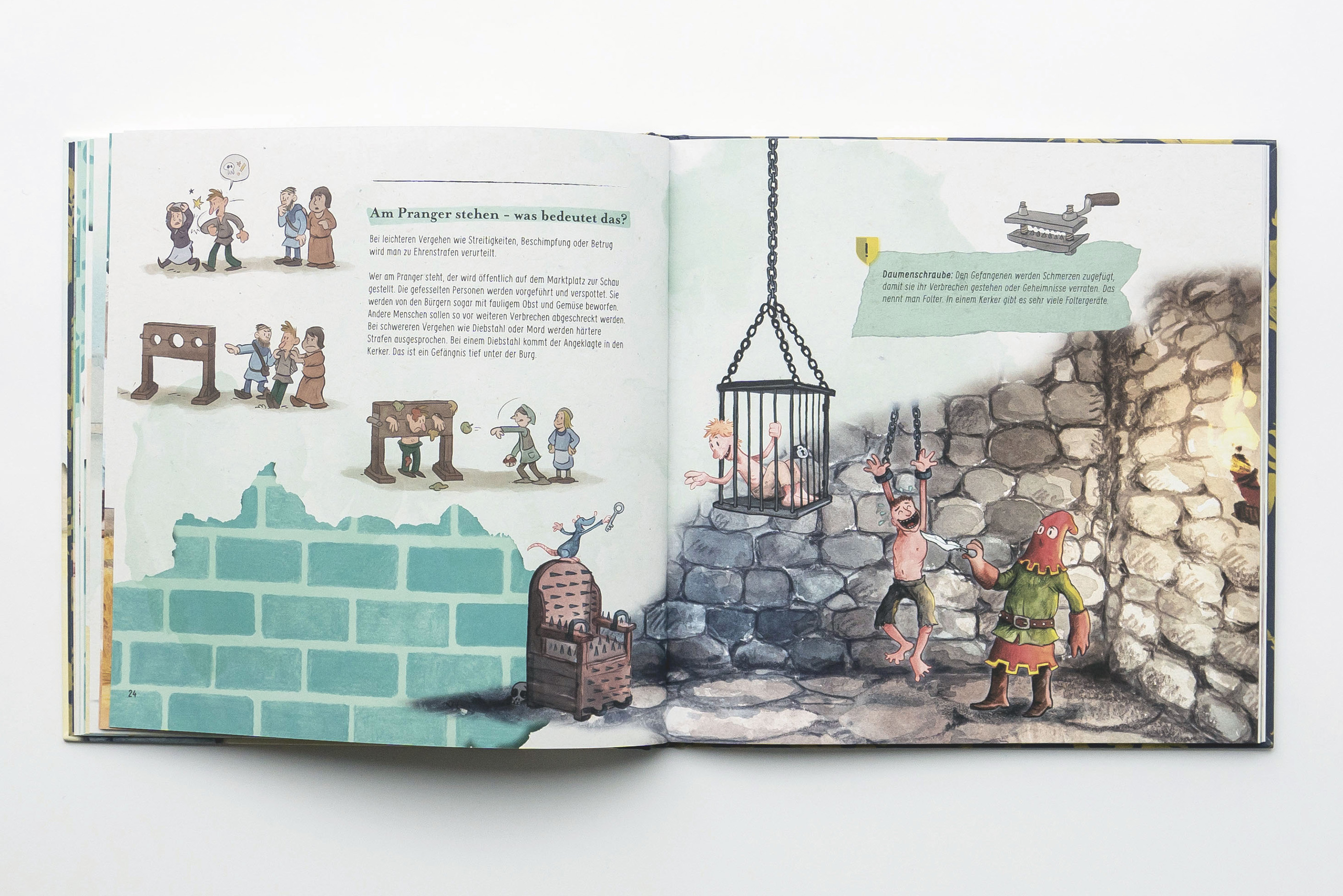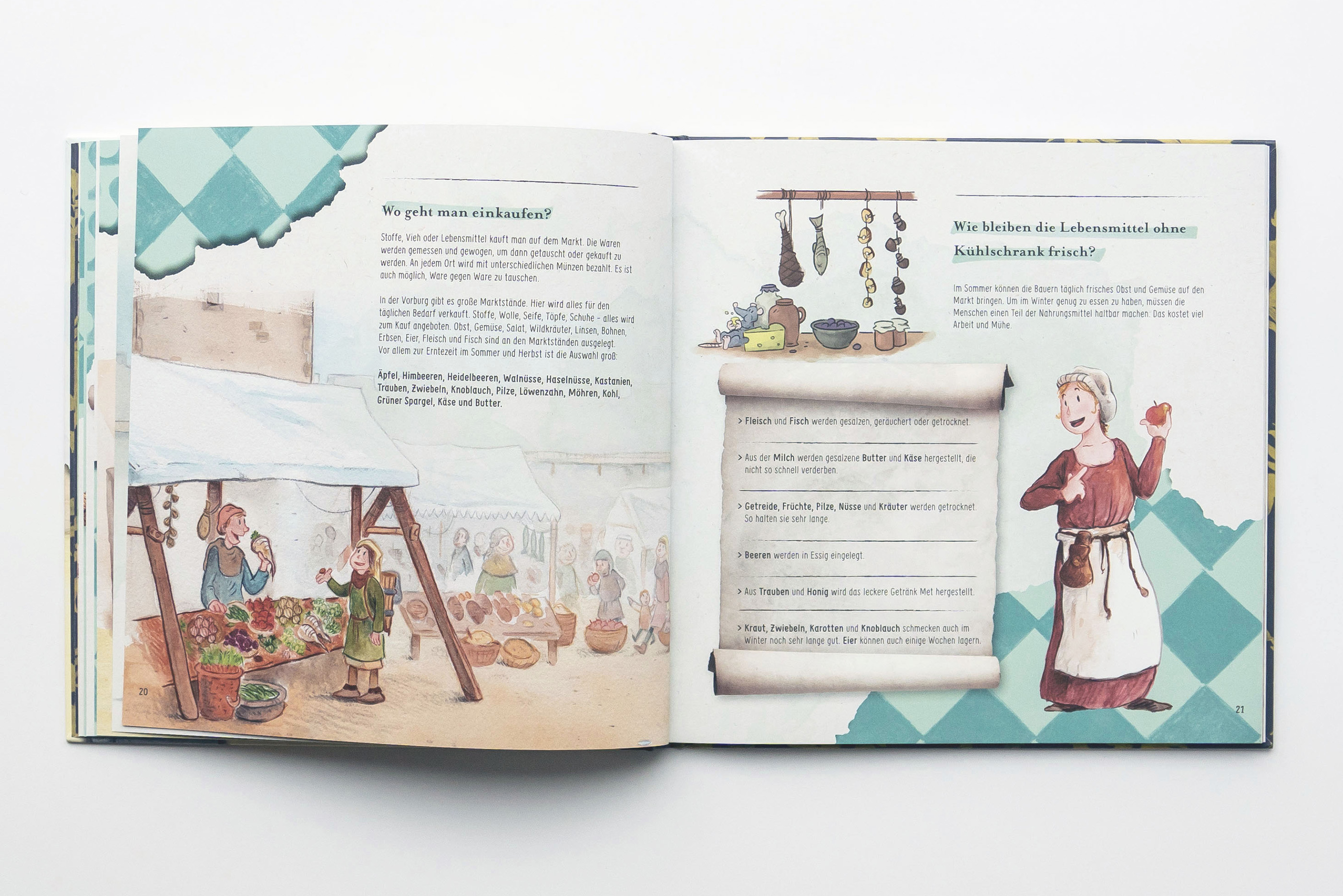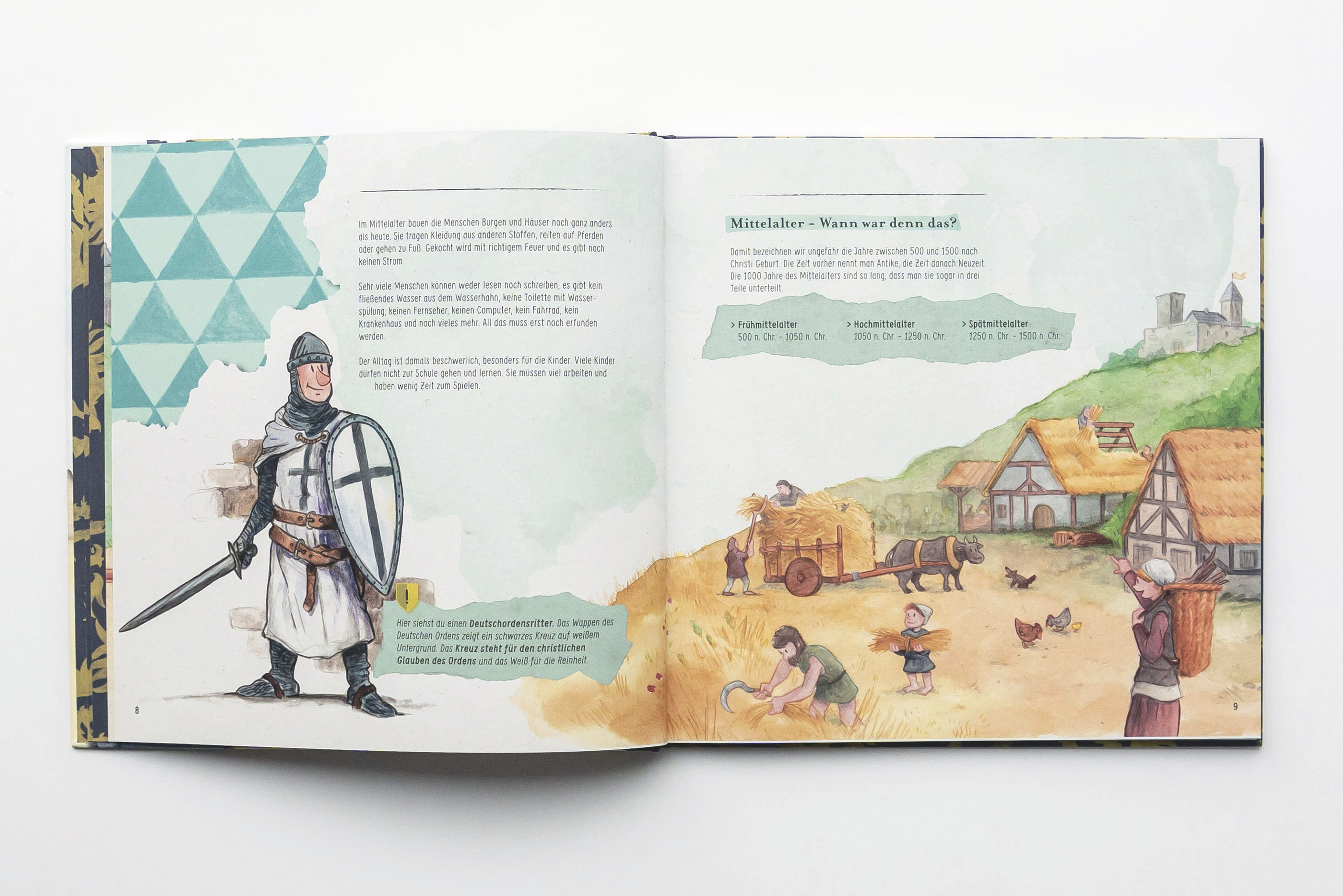Die Mitmachausstellung „Spurensuche im Mittelalter“ als Kindersachbuch zum Mitnehmen. Das bunte Treiben im Mittelalter wird für Kinder im Grundschulalter mittels altersgerechter Illustrationen zum Leben erweckt. Wie wird eine Burg gebaut? Wer wohnt dort und wo kauft man ein? Die Kinder erfahren ebenso, wie Lebensmittel auch ohne Kühlschrank frisch bleiben, was Bauern und Adelige essen und wie man ein Ritter wird. Die Inhalte der Ausstellung wurden für das Sachbuch neu zusammengestellt und ergänzt. So funktioniert das Buch auch unabhängig von der Ausstellung.