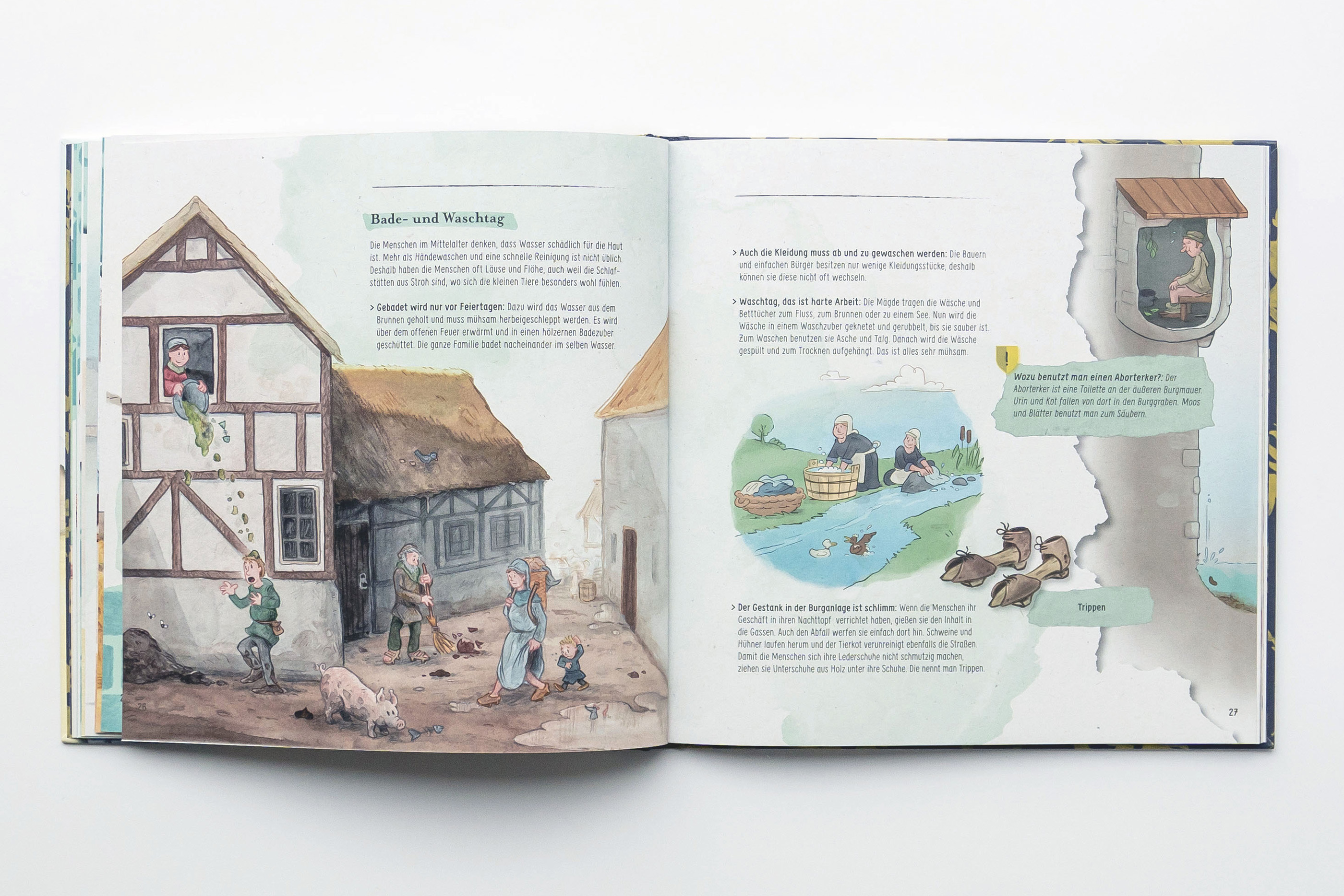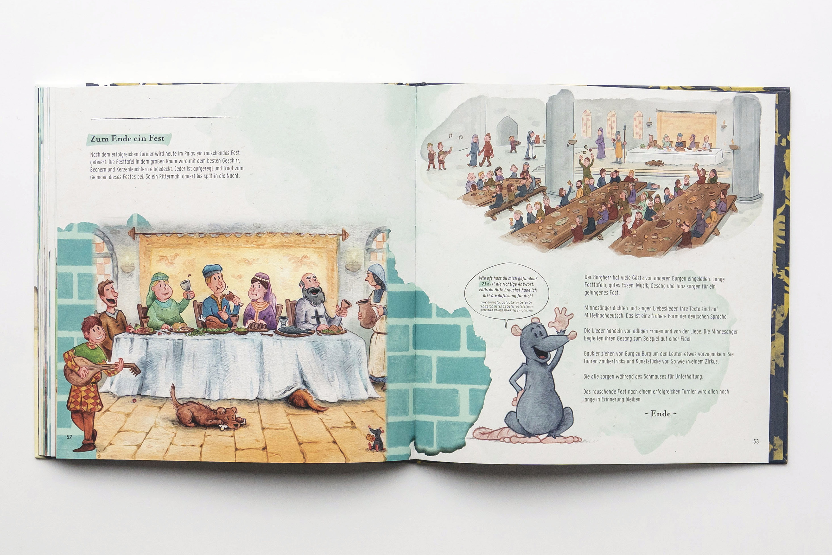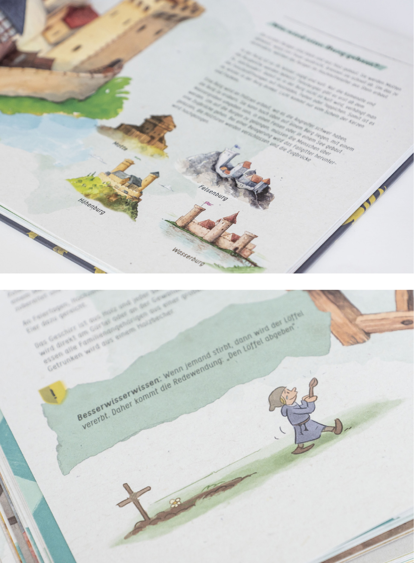 Die Mitmachausstellung „Spurensuche im Mittelalter“ als Kindersachbuch zum Mitnehmen. Das bunte Treiben im Mittelalter wird für Kinder im Grundschulalter mittels altersgerechter Illustrationen zum Leben erweckt. Wie wird eine Burg gebaut? Wer wohnt dort und wo kauft man ein? Die Kinder erfahren ebenso, wie Lebensmittel auch ohne Kühlschrank frisch bleiben, was Bauern und Adelige essen und wie man ein Ritter wird. Die Inhalte der Ausstellung wurden für das Sachbuch neu zusammengestellt und ergänzt. So funktioniert das Buch auch unabhängig von der Ausstellung.