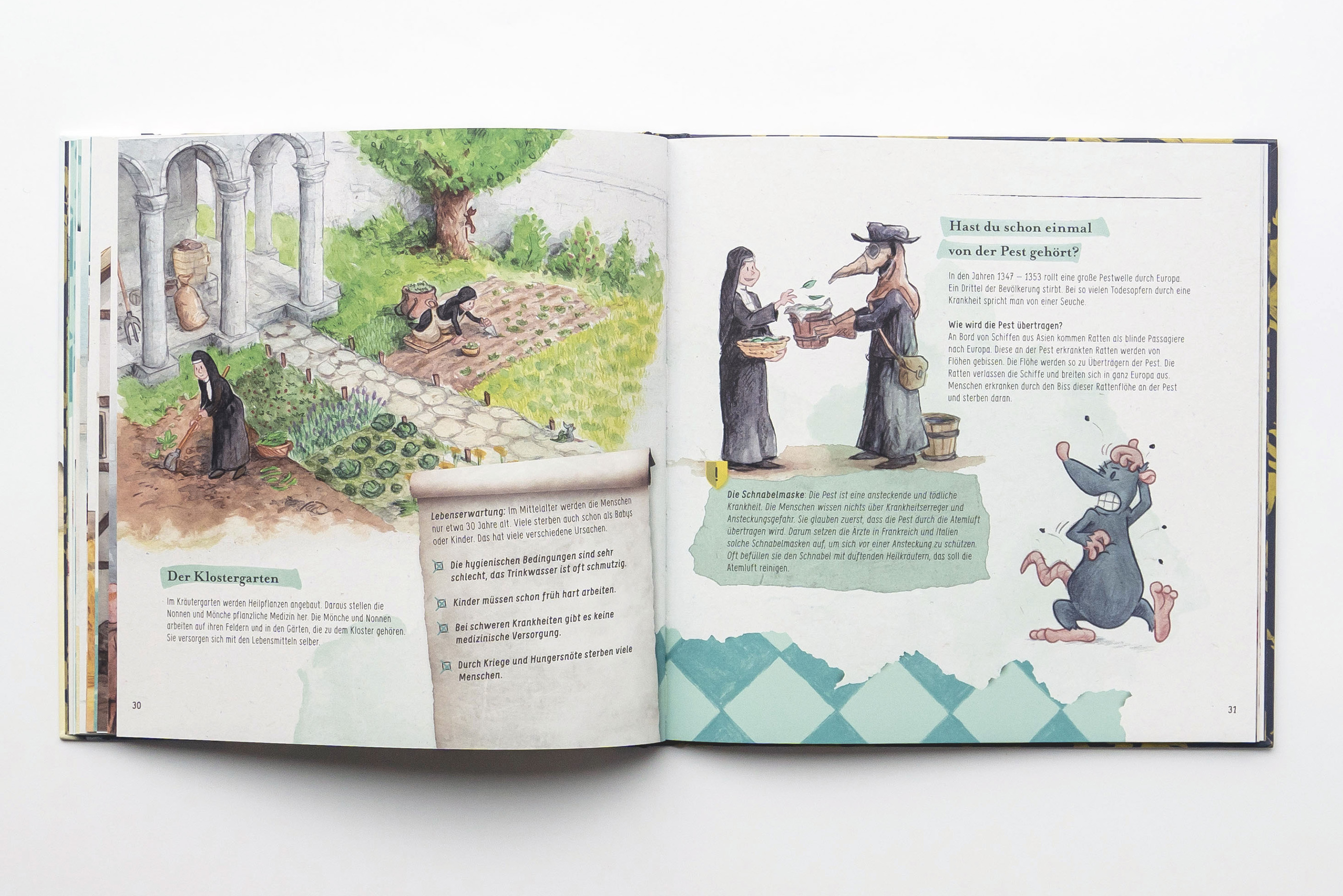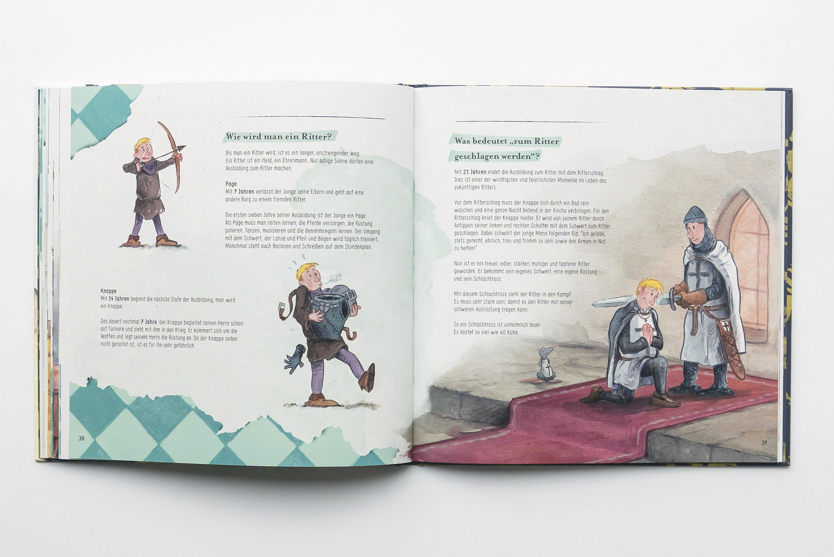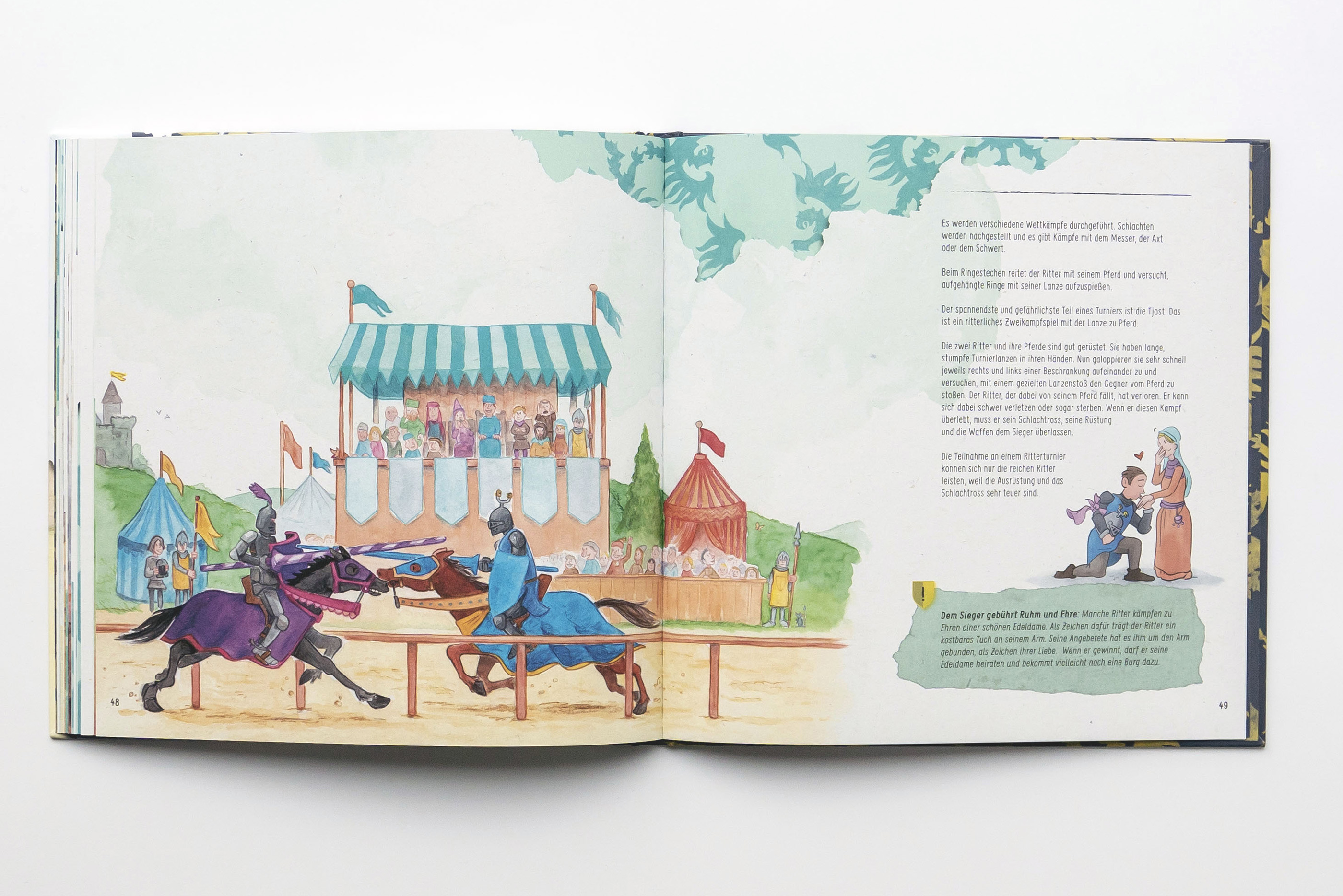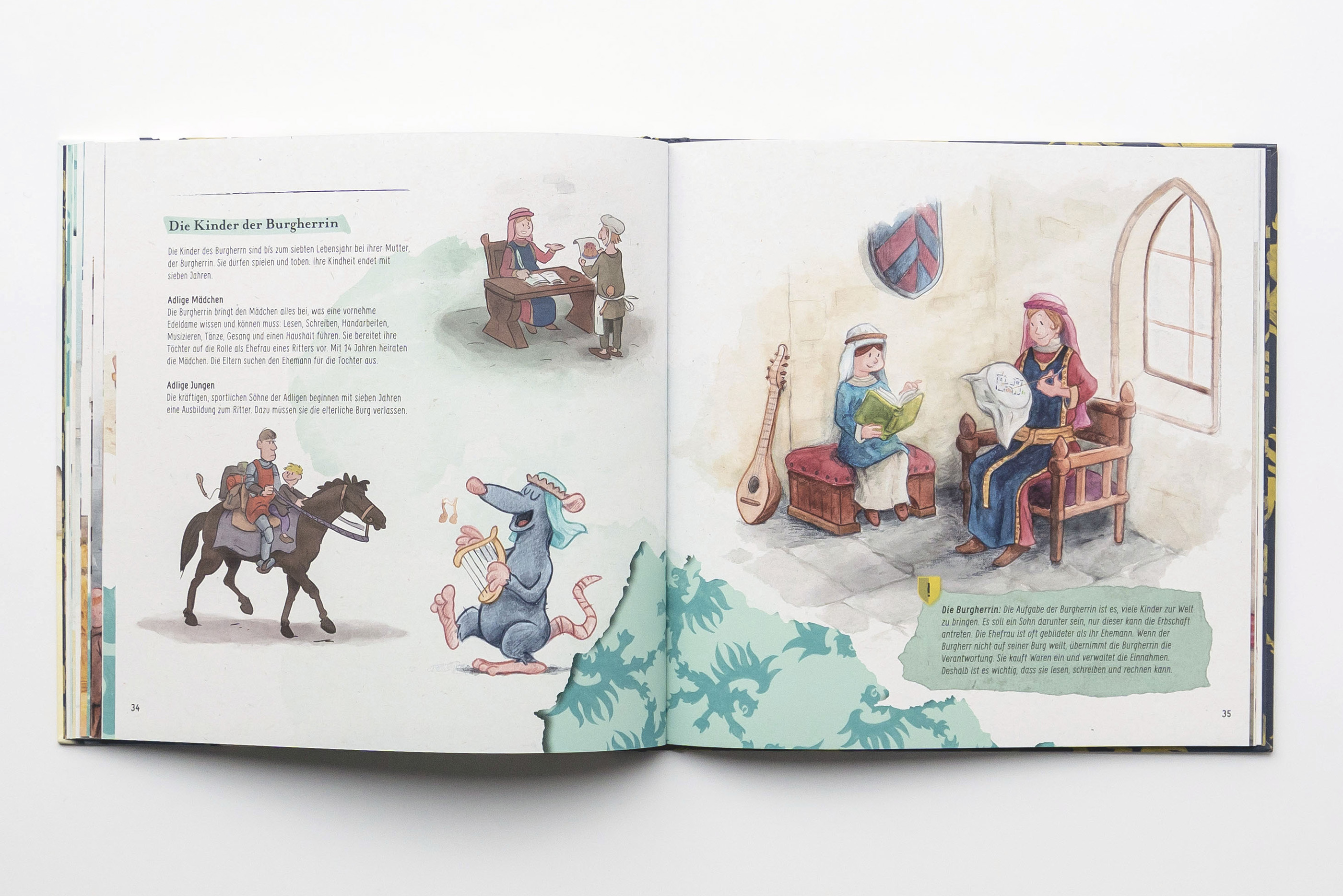 Die Mitmachausstellung „Spurensuche im Mittelalter“ als Kindersachbuch zum Mitnehmen. Das bunte Treiben im Mittelalter wird für Kinder im Grundschulalter mittels altersgerechter Illustrationen zum Leben erweckt. Wie wird eine Burg gebaut? Wer wohnt dort und wo kauft man ein? Die Kinder erfahren ebenso, wie Lebensmittel auch ohne Kühlschrank frisch bleiben, was Bauern und Adelige essen und wie man ein Ritter wird. Die Inhalte der Ausstellung wurden für das Sachbuch neu zusammengestellt und ergänzt. So funktioniert das Buch auch unabhängig von der Ausstellung.