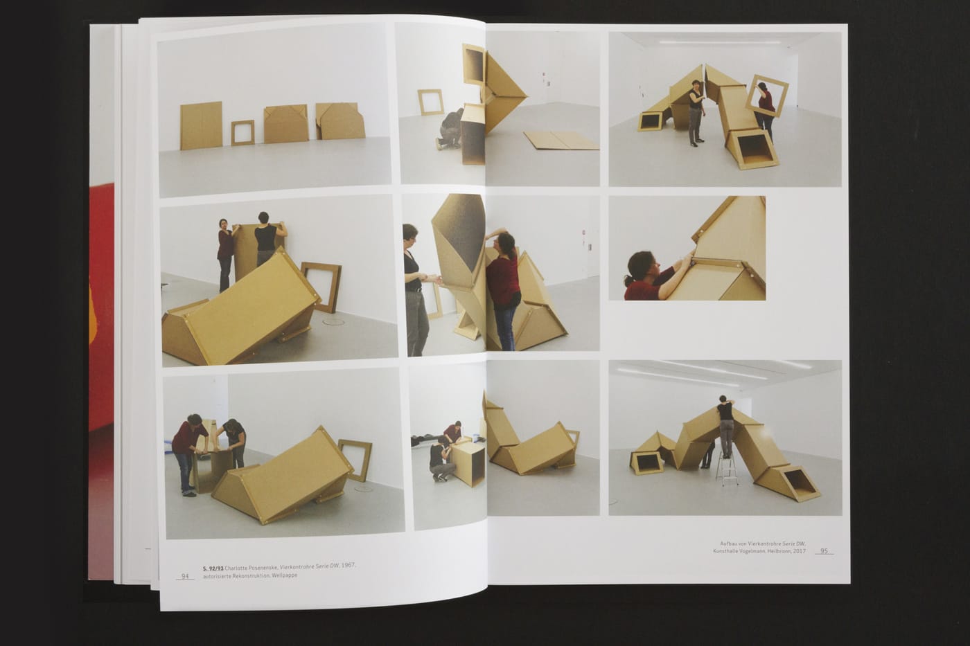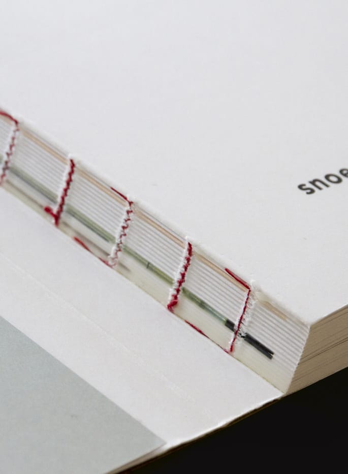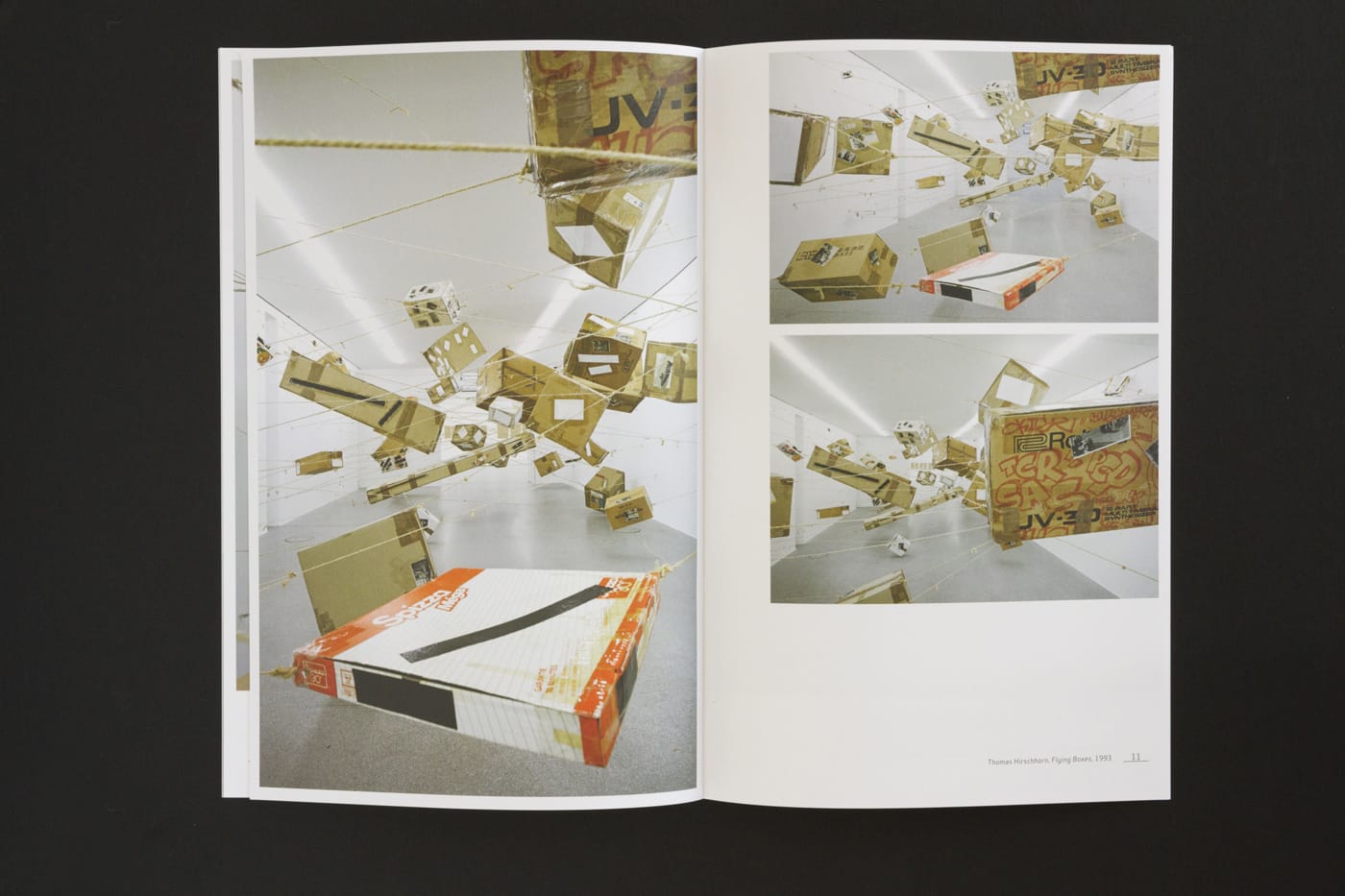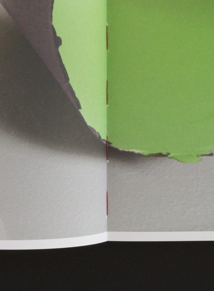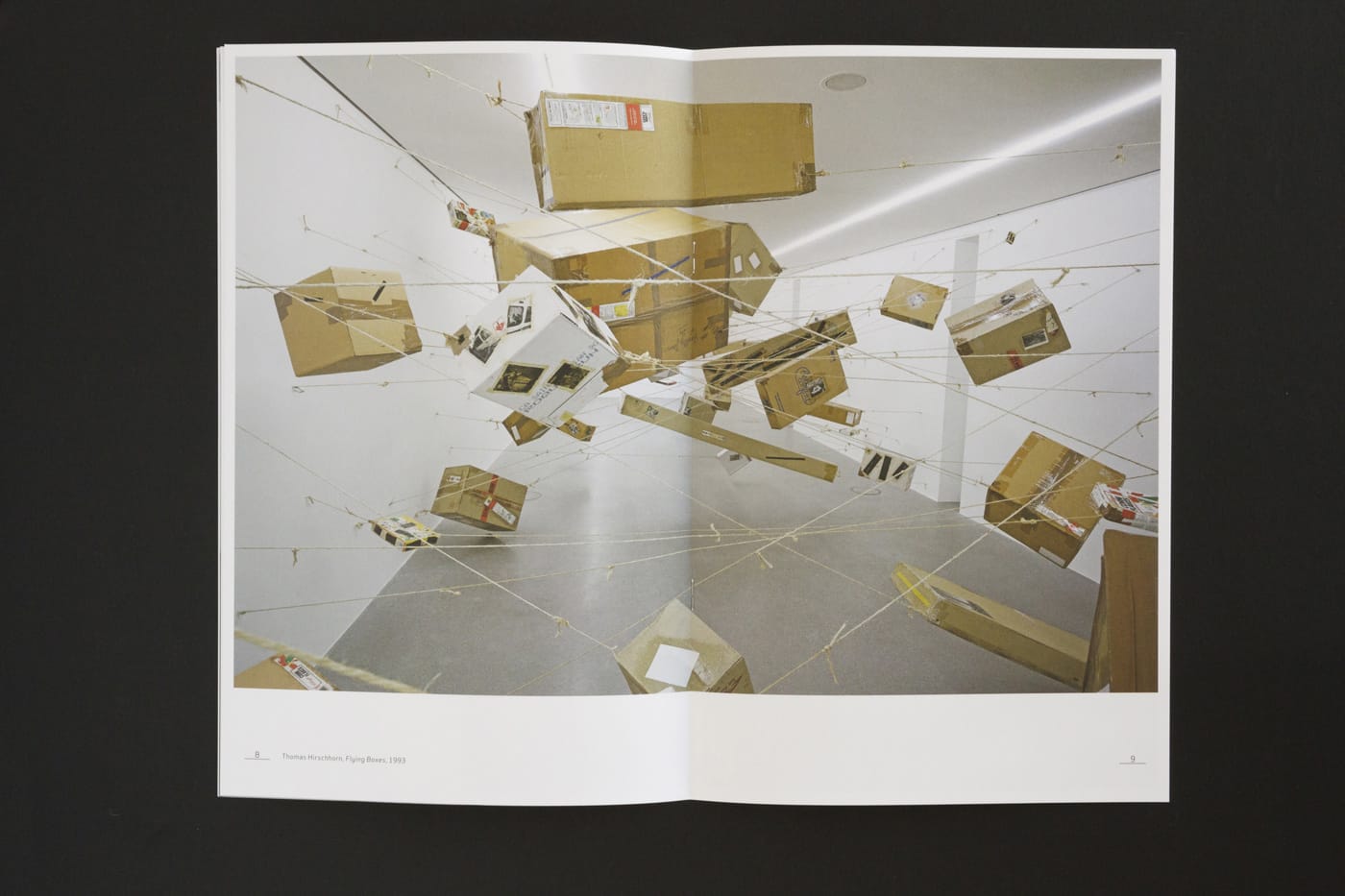 Katalog zur Ausstellung „Skulpturen aus Papier. Von Kurt Schwitters bis Karla Black“ der Städtischen Museen Heilbronn. Ausgeführt in der Technik der Schweizer Broschur. Es handelt sich hier um eine besonders hochwertige Art der Buchbindung, bei der der fadengeheftete Buchblock lediglich auf der Rückseite in den Einband geklebt wird. Zum Einsatz kommt ein ungestrichenes Volumenpapier. Dem Katalog sind als Ergänzung zwei weitere Druckprodukte beigefügt — eine 16-seitigen Broschüre, rückstichgeheftet und ein Faltplakat.