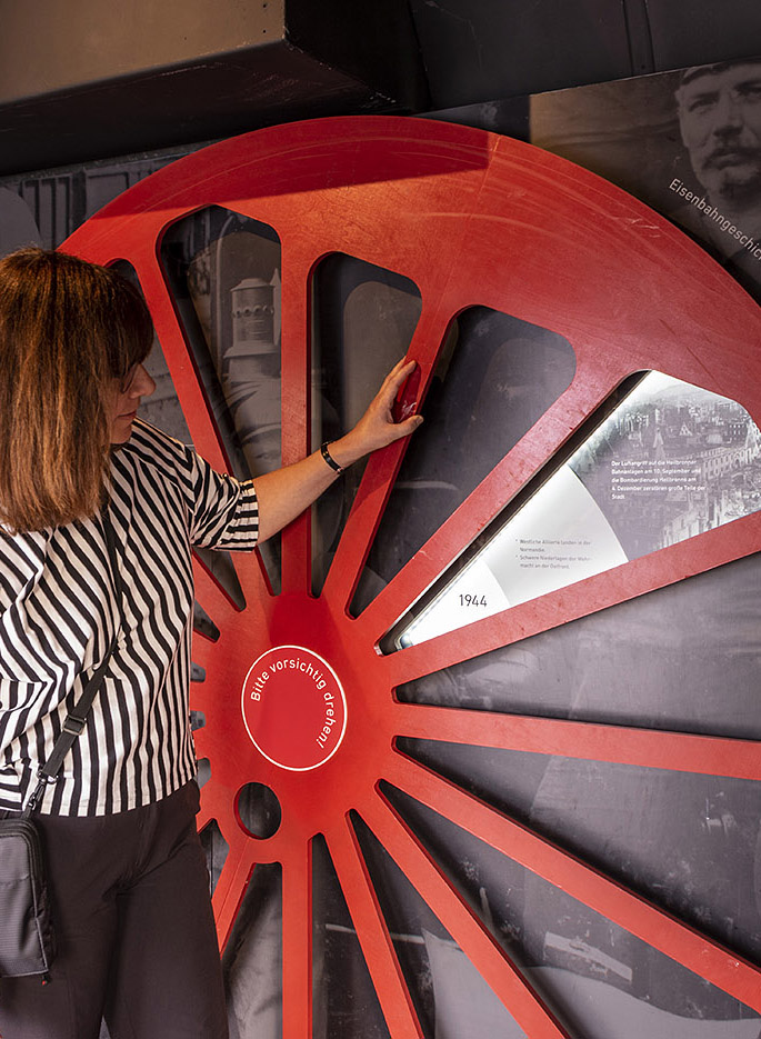 Ausstellungskonzept, InteractiveMit Lokomotiven und einem musealen Ableger in einem restaurierten Waggon richtet das Süddeutsche Eisenbahnmuseum Heilbronn einen Botschaftsort auf der Bundesgartenschau Heilbronn 2019 aus. Die von gruppe sepia konzipierte Ausstellung zeigt Impressionen aus dem Museum und vermittelt einen Überblick über die Mobilitätsgeschichte Heilbronns: Zuerst der Neckar, später vor allem die Eisenbahn haben das Gesicht der Stadt wesentlich geprägt. Die historische Hafenanlage ist Ausgangspunkt einer Zeitreise, die vor 700 Jahren beginnt und die Transformation des Geländes aufzeigt. Einige ausgewählte Exponate, ein „Rad der Zeit“ und zwei Filme geben einen Einblick in die vergangenen Zeiten.