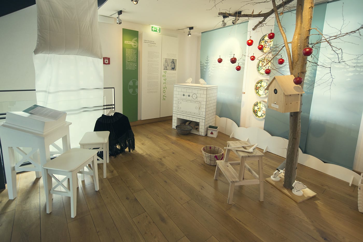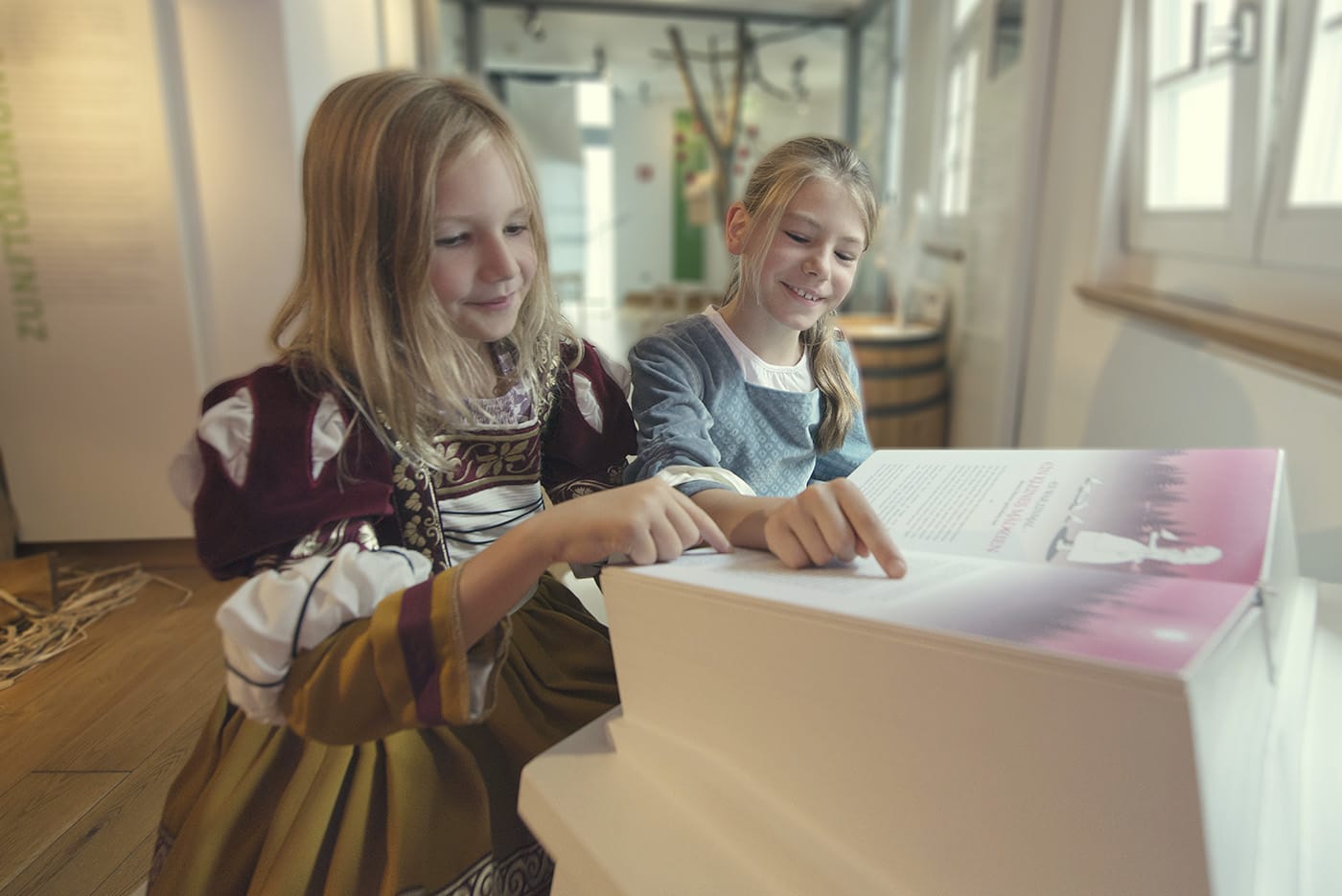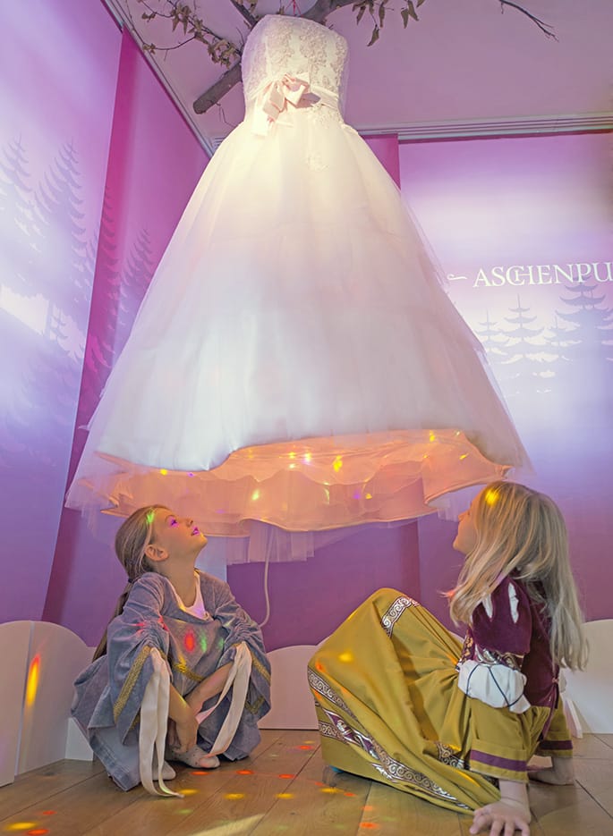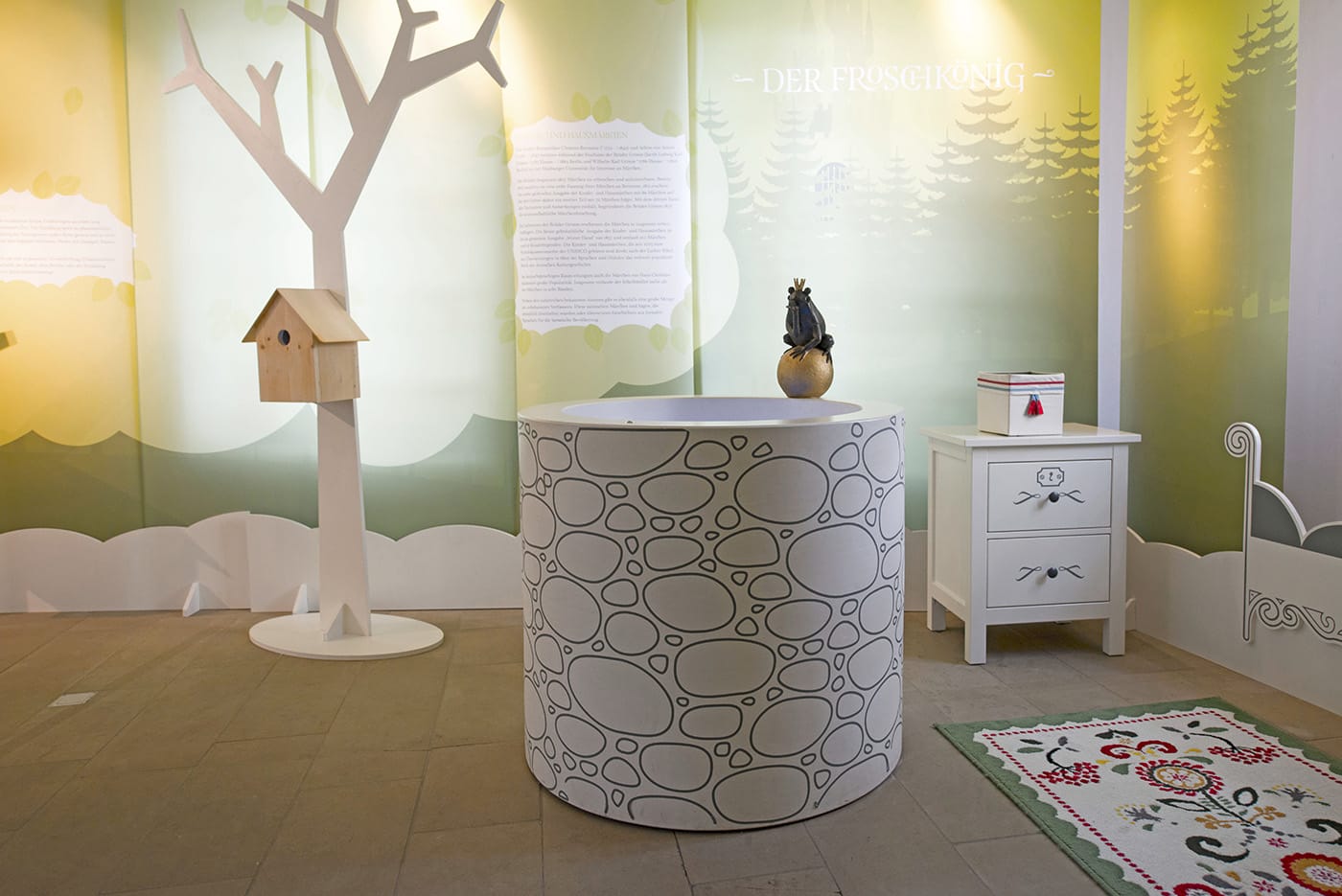 AusstellungskonzeptDie Märchen-Mitmachausstellung “Es war einmal…” des Stadtmuseums Neckarsulm vermittelt Kindern und Erwachsenen eine geheimnisvolle Welt voller Prinzessinnen, sprechender Tiere, böser Hexen, verzauberter Dinge und verwandelter Prinzen. An mehreren Erlebnisstationen tauchen Kinder aktiv in die Märchenwelt ein. Es gibt eine eine Märchenküche, Kostüme zum Anziehen, sprechende Frösche, ein besonderes Ballkleid, einen verwunschenen Brunnen, einen außergewöhnlichen Spiegel und vieles mehr. gruppe sepia zeichnet verantwortlich für die grafische Ausgestaltung und eine Vielzahl von Detailideen.