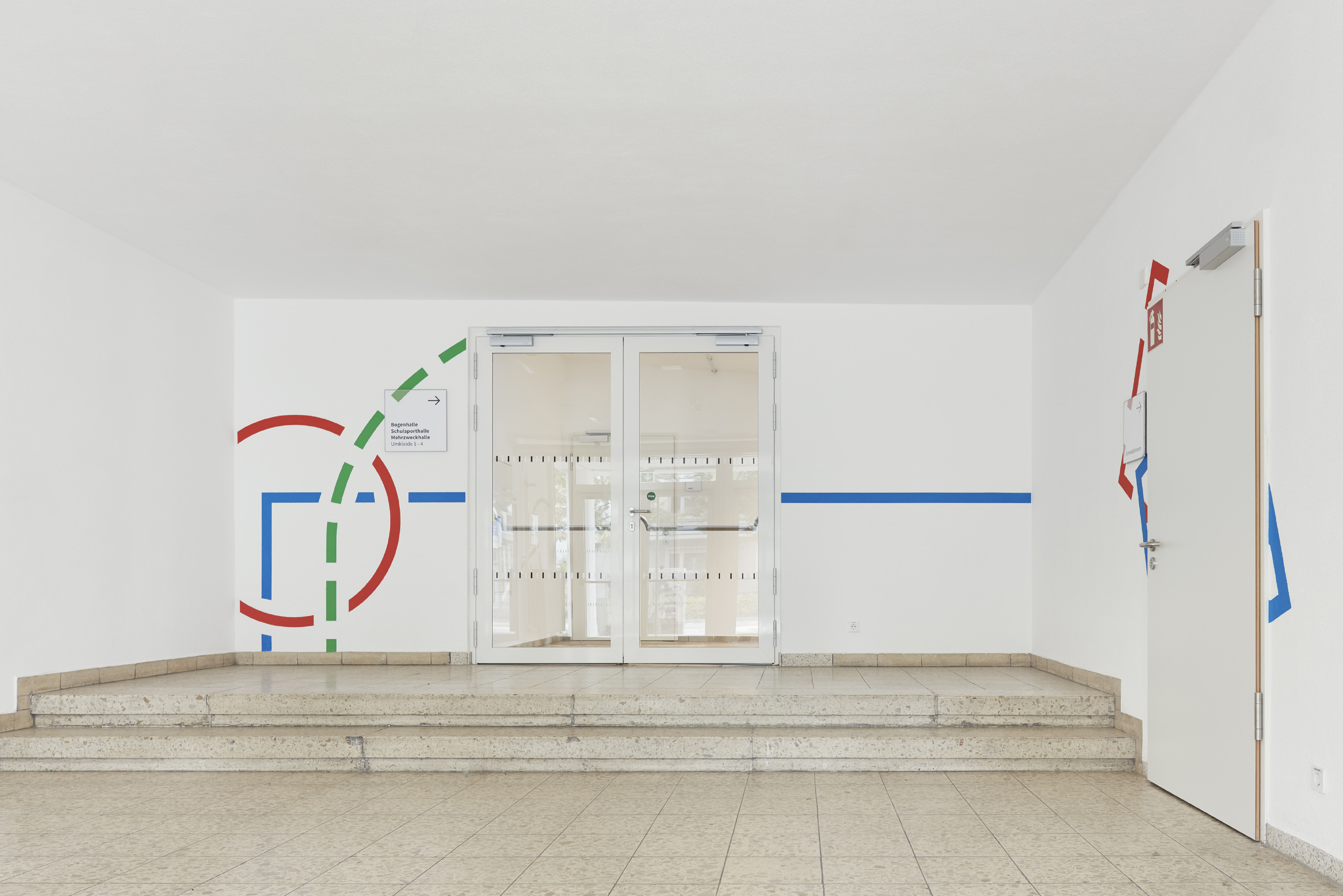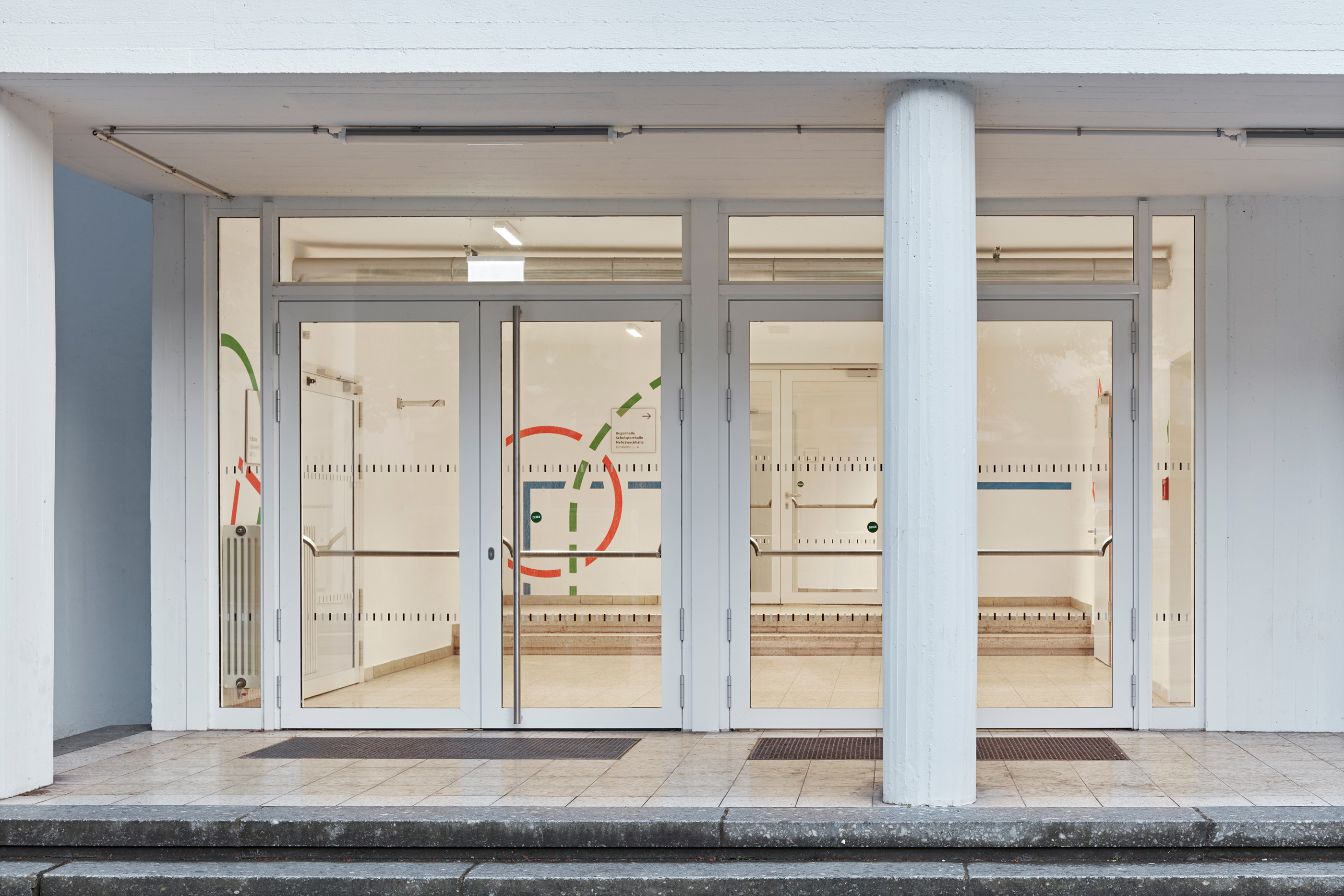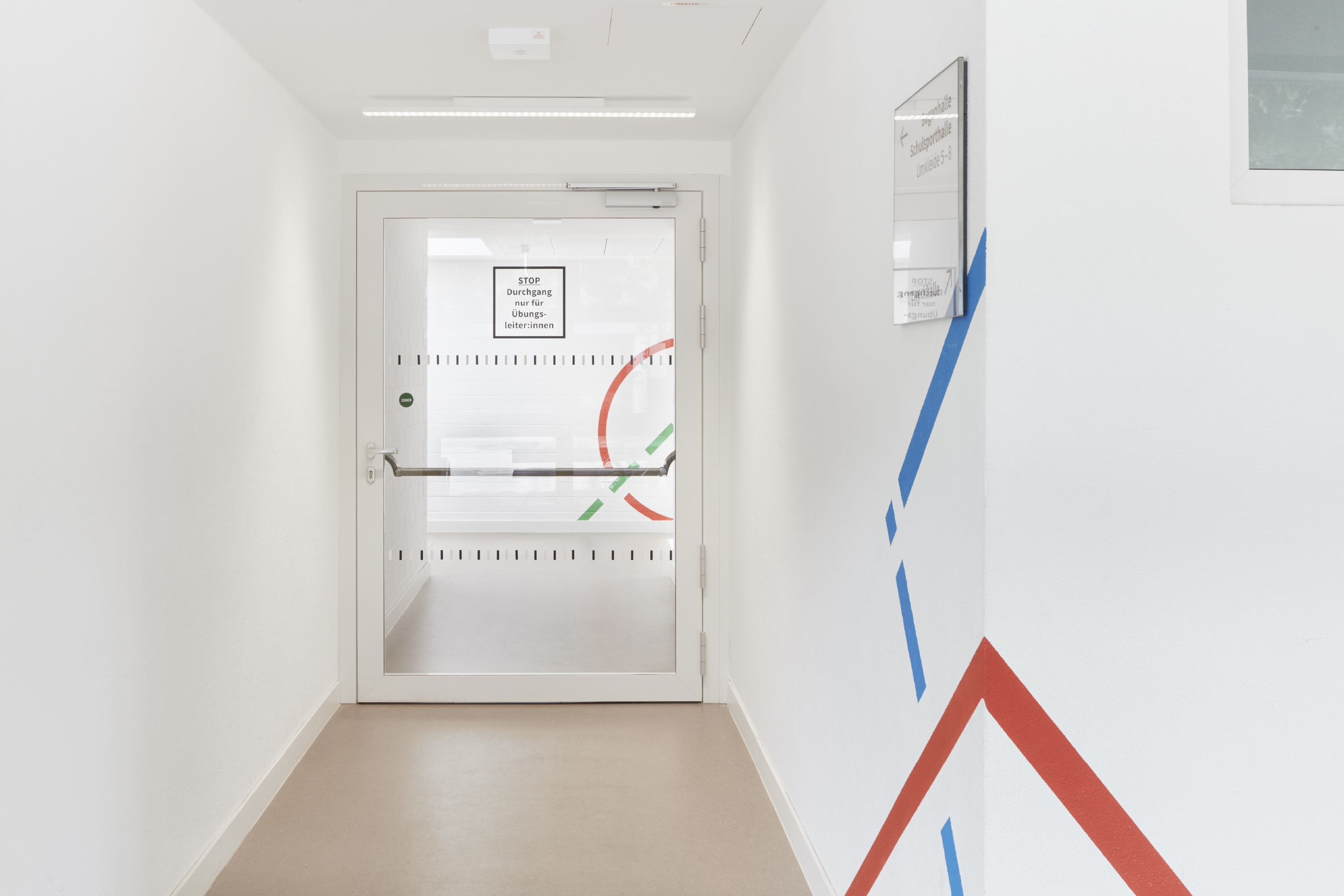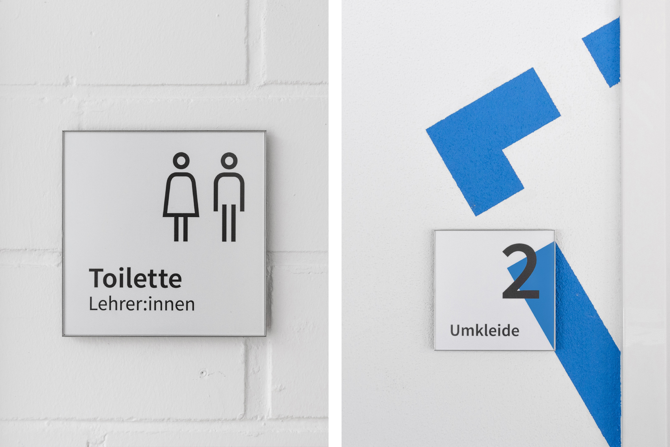 Rot, Blau und Grün für den Sport: Das durch gruppe sepia entwickelte grafische Konzept für die frisch sanierte Mönchseehalle in Heilbronn bringt ein geometrisches Regularium spannend auf die Wände, bezieht die Leitelemente in Form quadratischer Tafeln mit ein und schafft Klarheit, Leichtigkeit — und nicht zuletzt Orientierung.