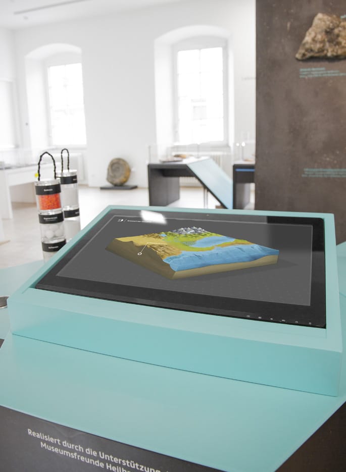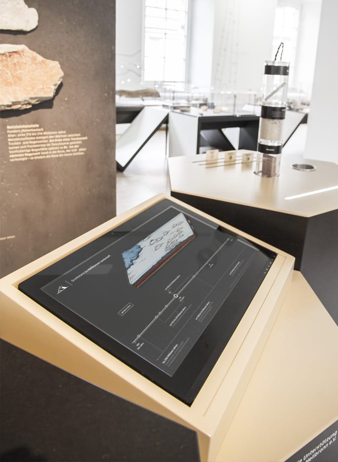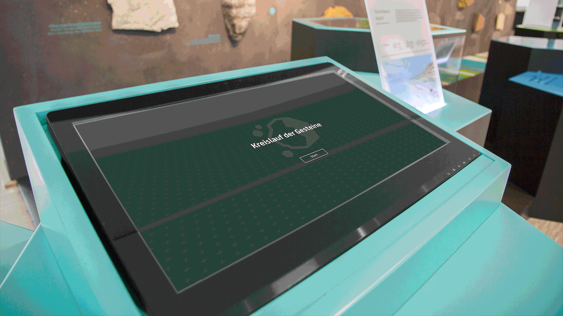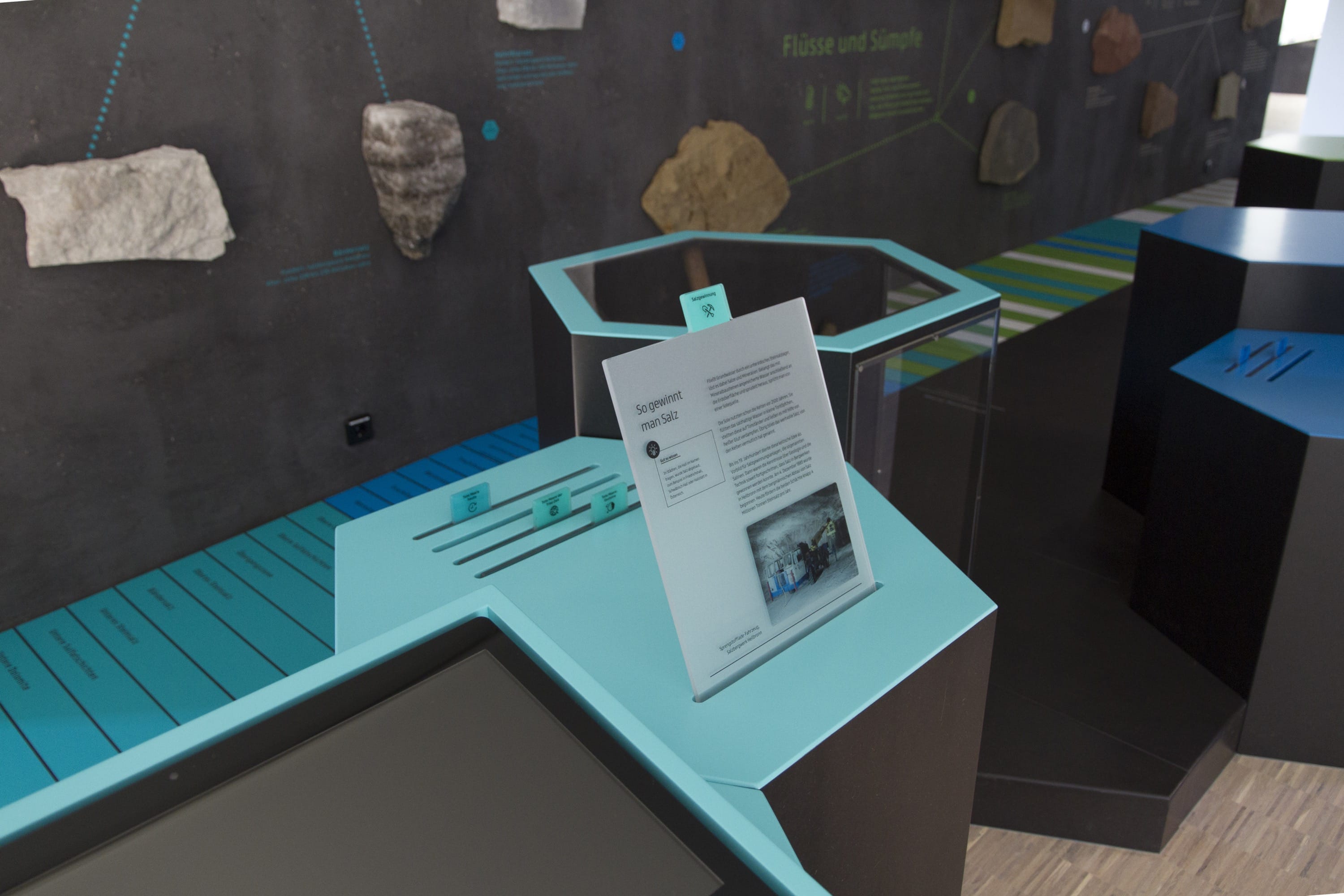 Hands-on: Erdgeschichtliche Prozesse, wie etwa die „Salzentstehung“ oder der „Kreislauf der Gesteine“, können von BesucherInnen interaktiv erfahren und spielerisch erlernt werden. Alle interaktiven Stationen wurden durch gruppe sepia in enger Zusammenarbeit mit dem wissenschaftlichen Team der Städtischen Museen entwickelt und gestaltet.