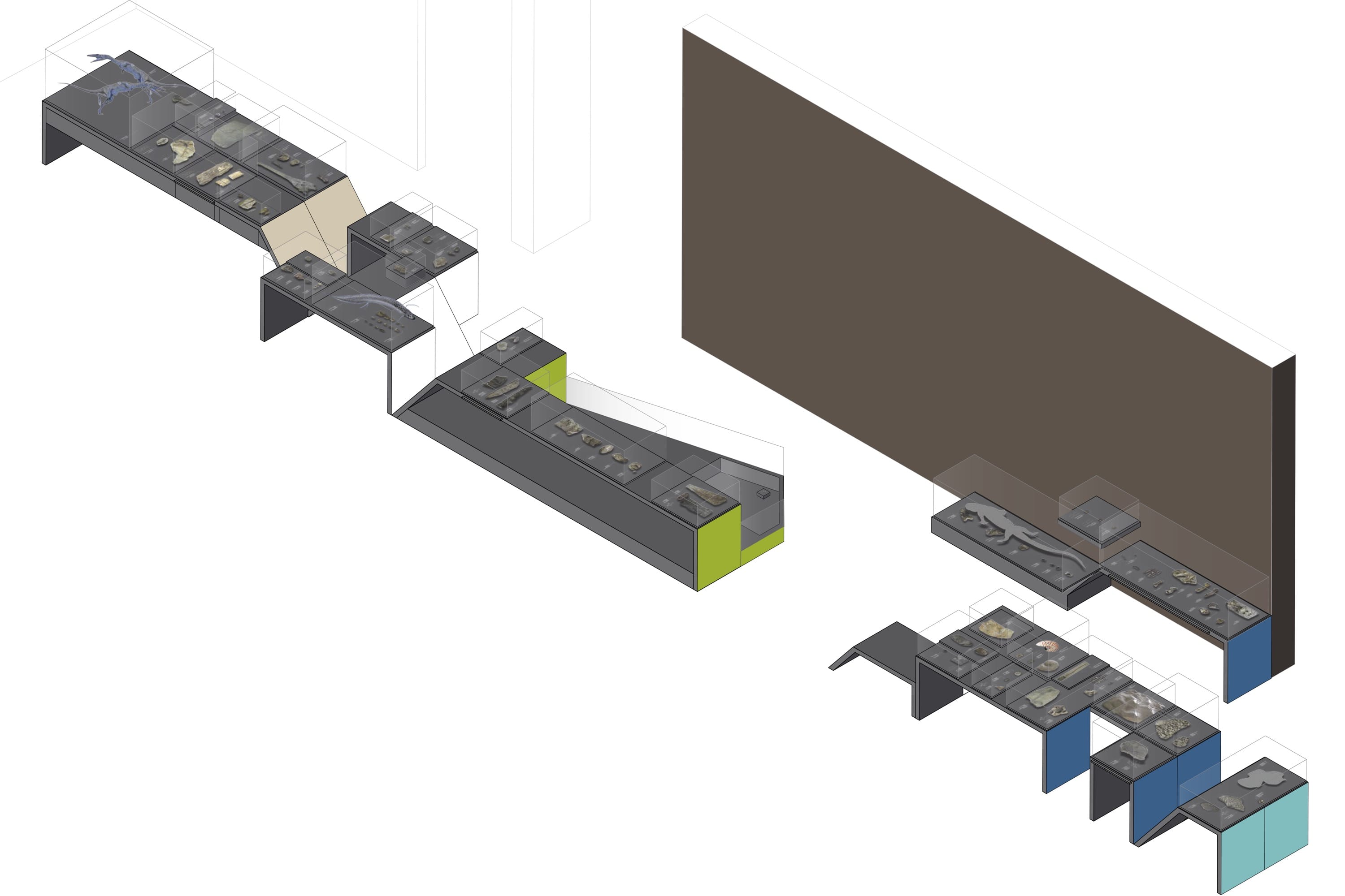 Ein durchdachtes System von Präsentationsblöcken und ein schlüssiges Farbschema lassen BesucherInnen die verschiedenen erdgeschichtlichen Zeitabschnitte erkennen und vermitteln wissenschaftlichen Hintergrund und wertvolle Detailinformation.