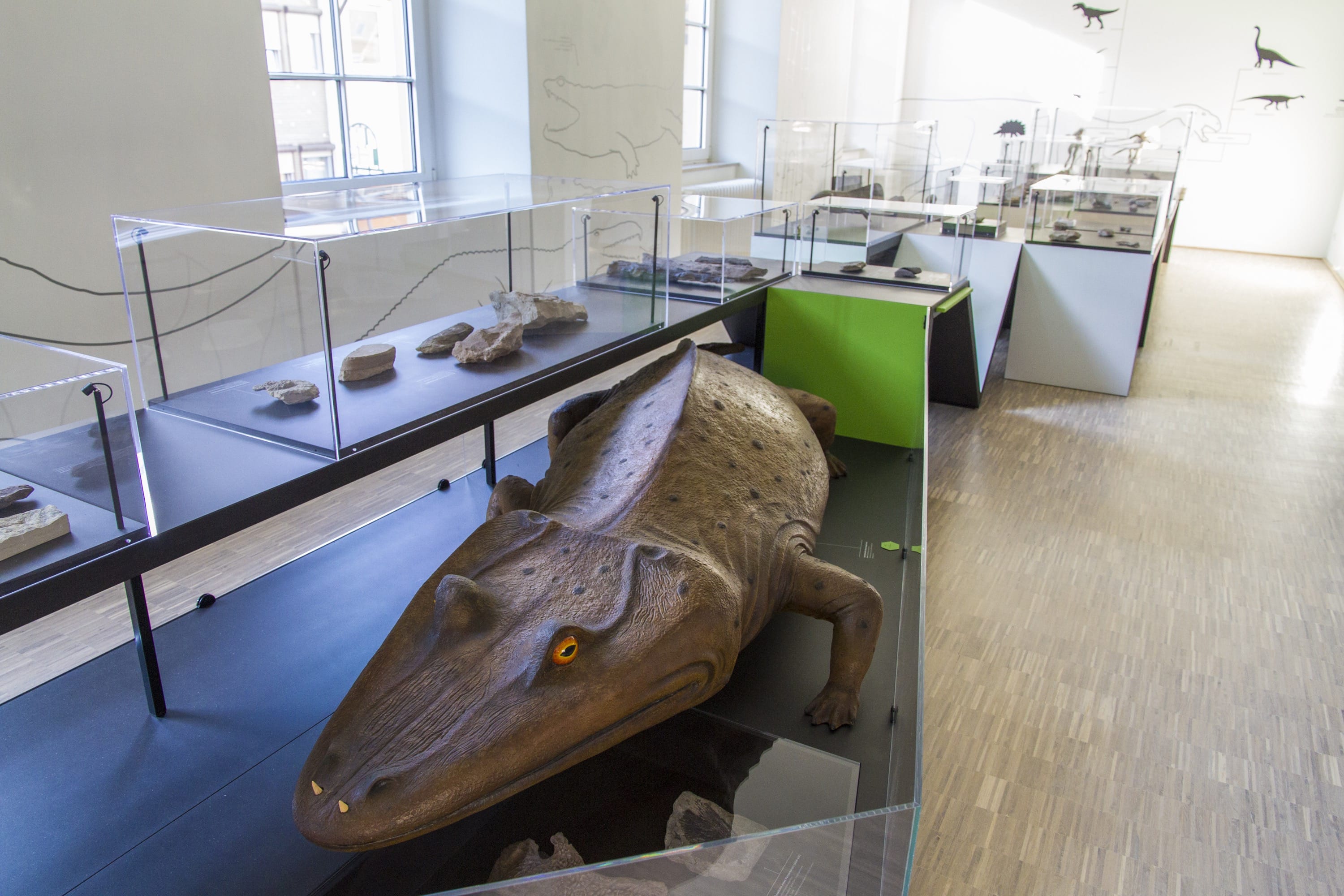 Die ausgestellten Fossilien belegen die mannigfaltige Flora und Fauna. So entwickelten sich in der Trias-Zeit die größten Amphibien der Erdgeschichte, die ersten Dinosaurier und die ersten Säugetiere. Einige Beispiele sind als lebensgroße Modelle zu sehen.