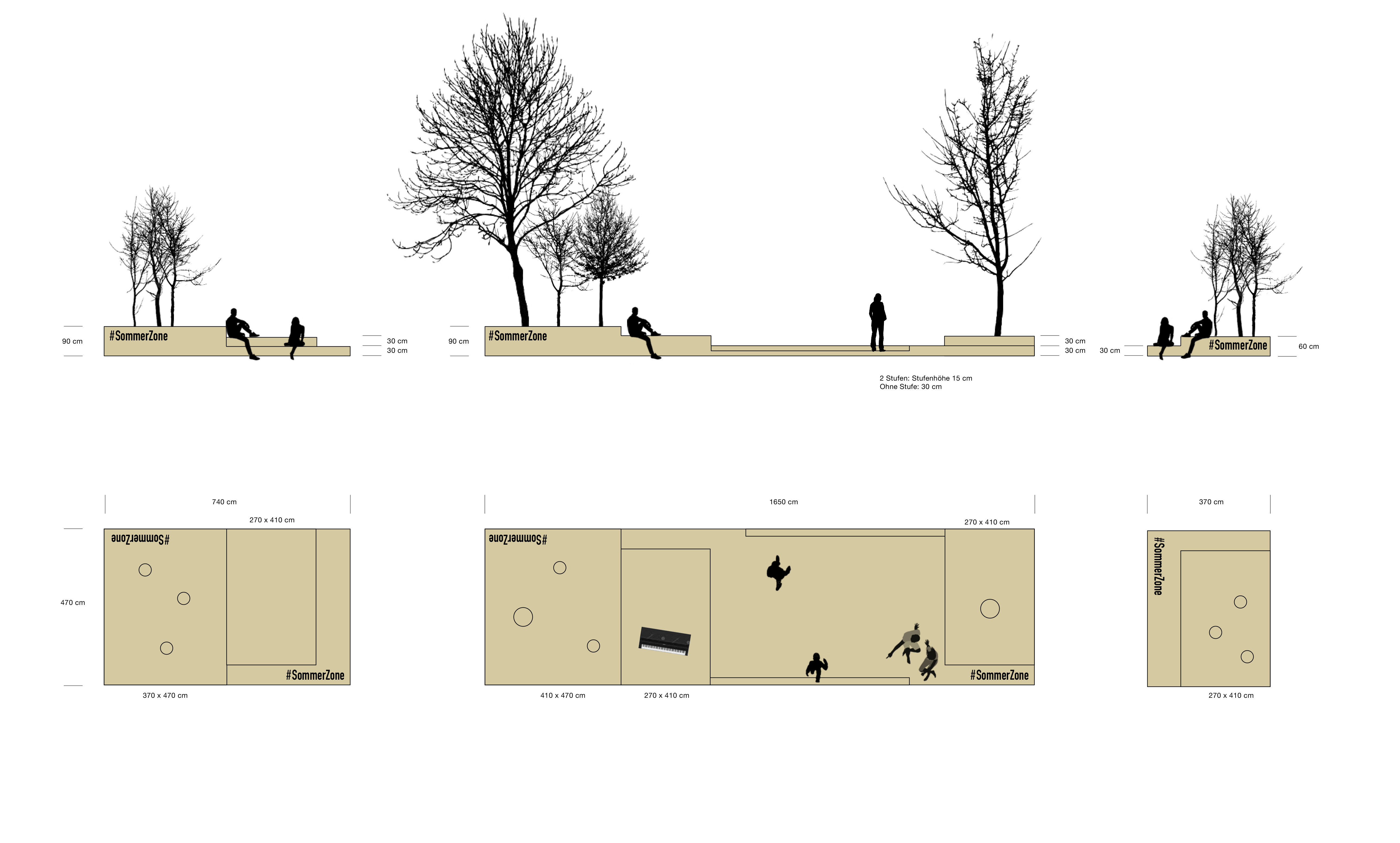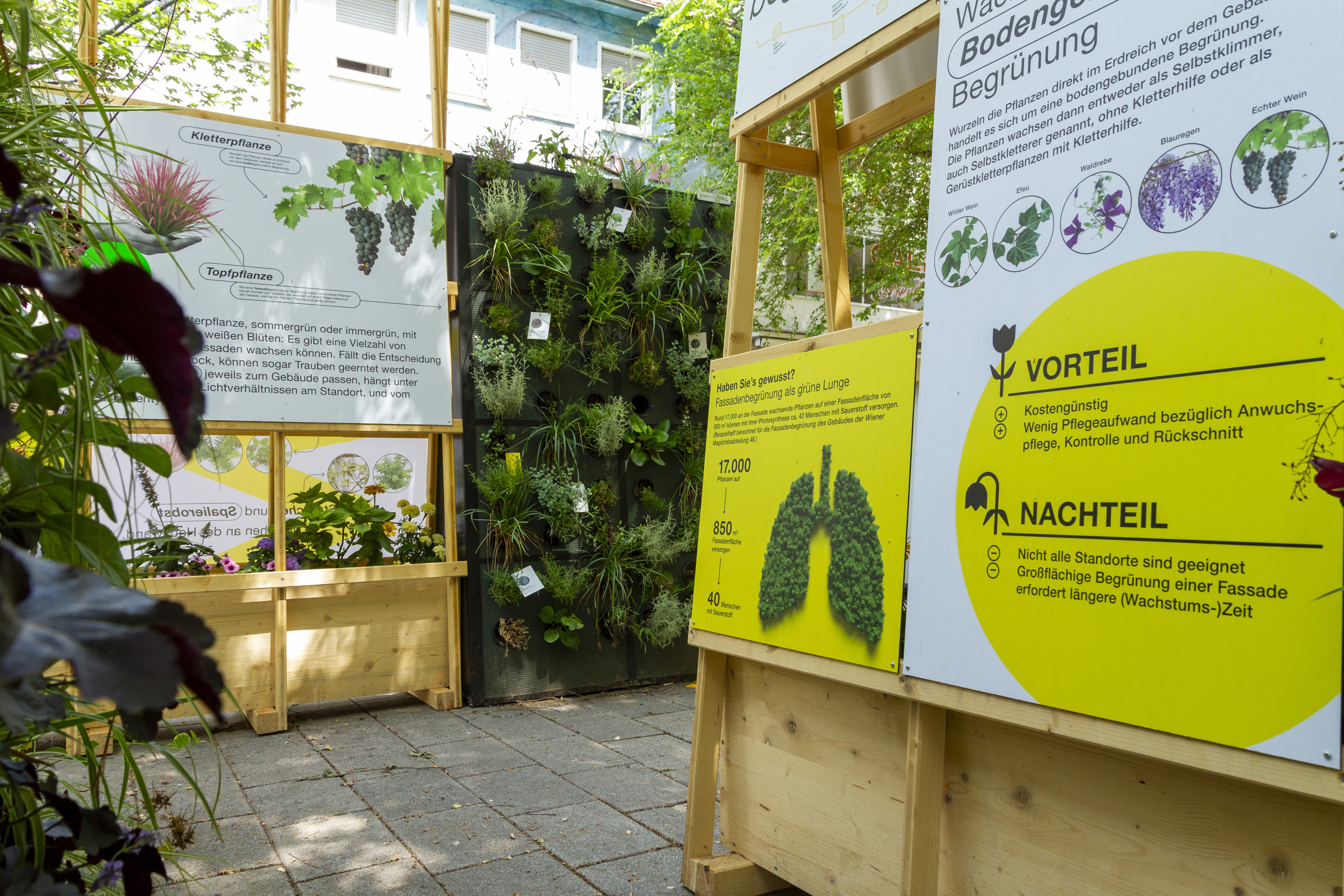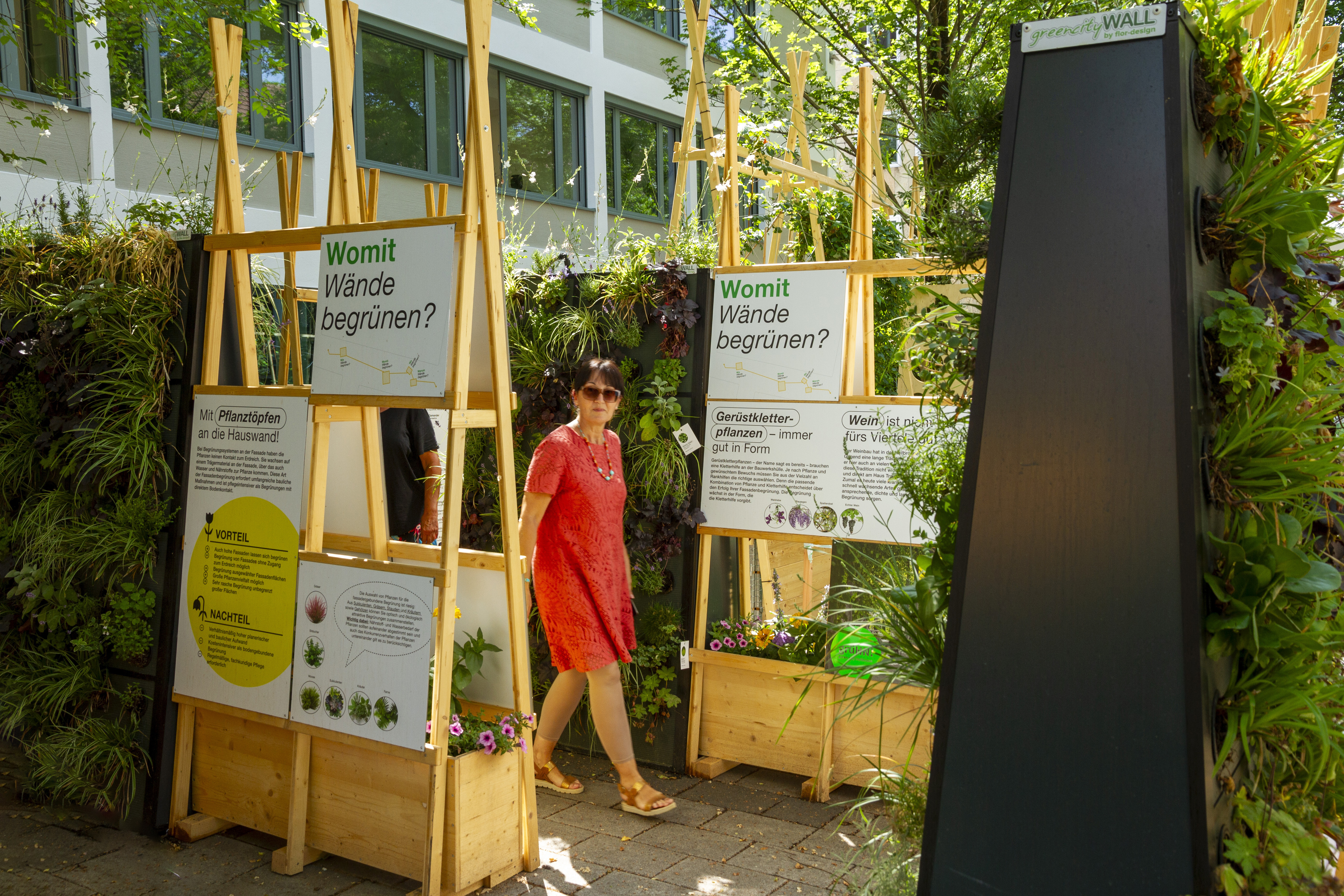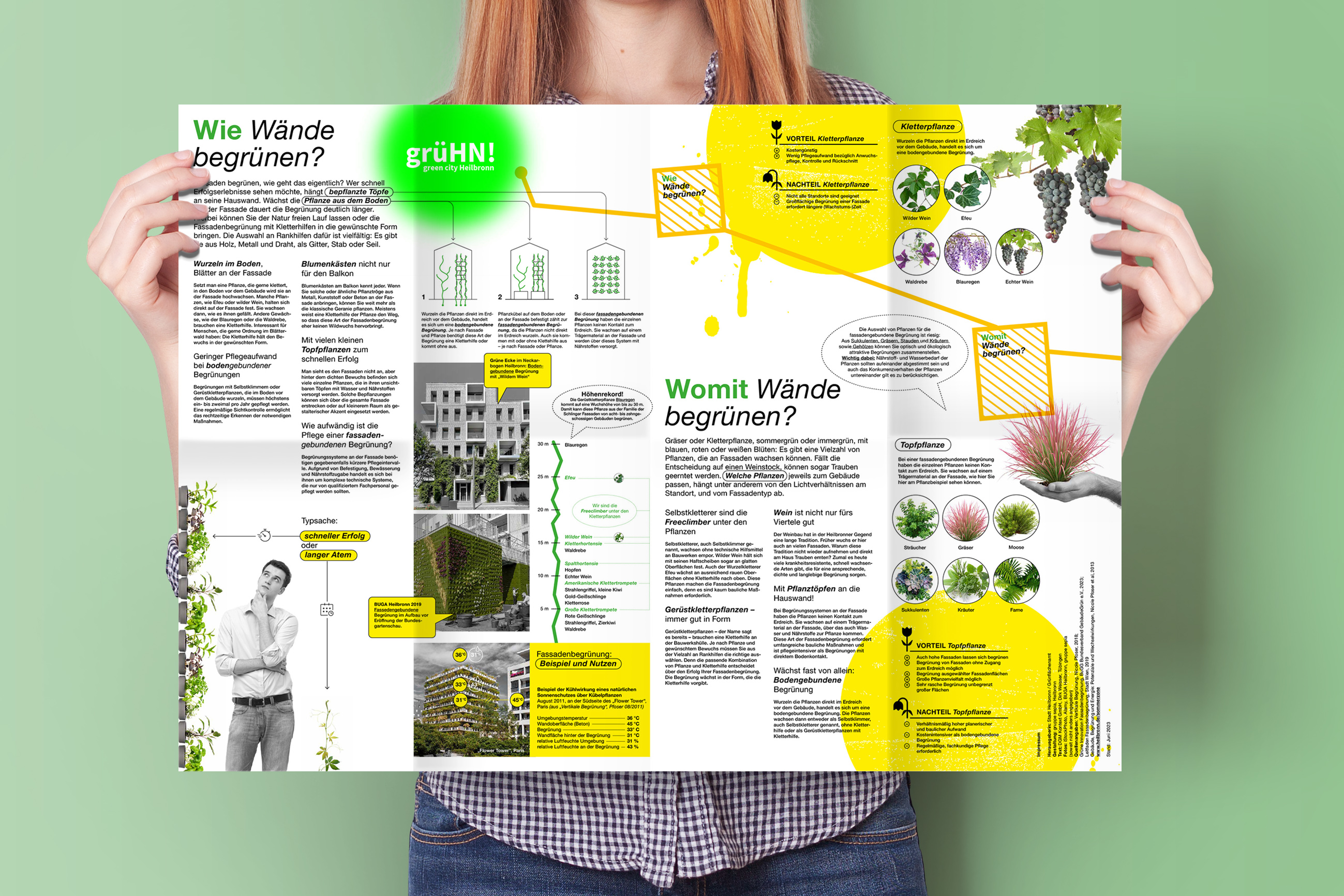 Summer in the City! Im Jahr 2023 zieht die #SommerZone in die Lohtorstraße und bietet neben schattigen Erholungsräumen auch einen motivierenden Exkurs zum Thema Wandbegrünung. Eine Vielzahl an Gehölzen, Kletterpflanzen und Stauden laden ein zum Schauen, Anfassen, Erleben. Durch die Ausstellung leitet die Farbe Gelb und ein leuchtend-grüner Spot steht für die Idee der „Green City“. Zur Realisierung des Projekts ging das Grünflächenamt der Stadt Heilbronn eine enge Kooperation mit gruppe sepia ein: Das Büro zeichnet verantwortlich für Konzept und Ausstellungsmodule, für Grafik, Text und Branding.