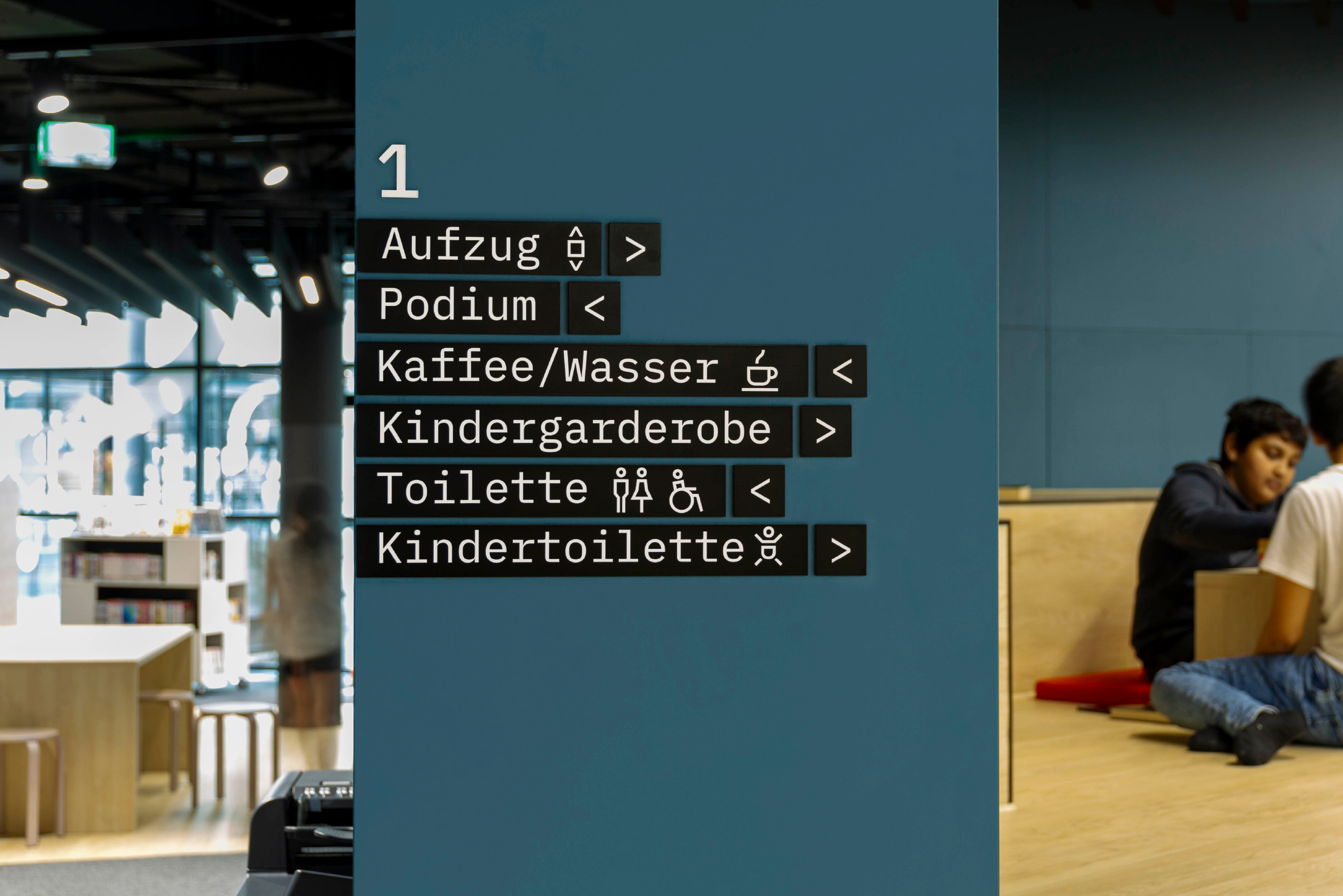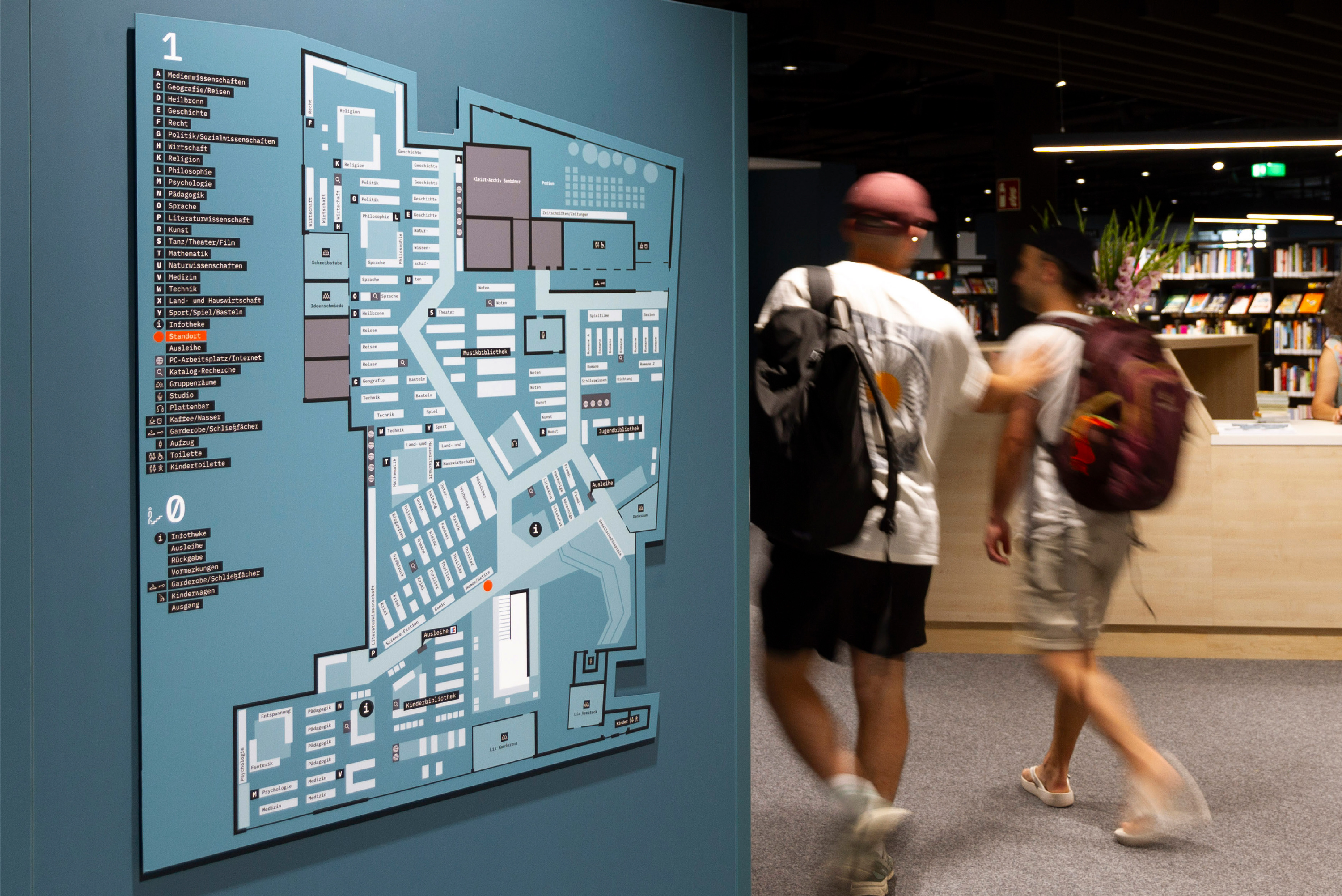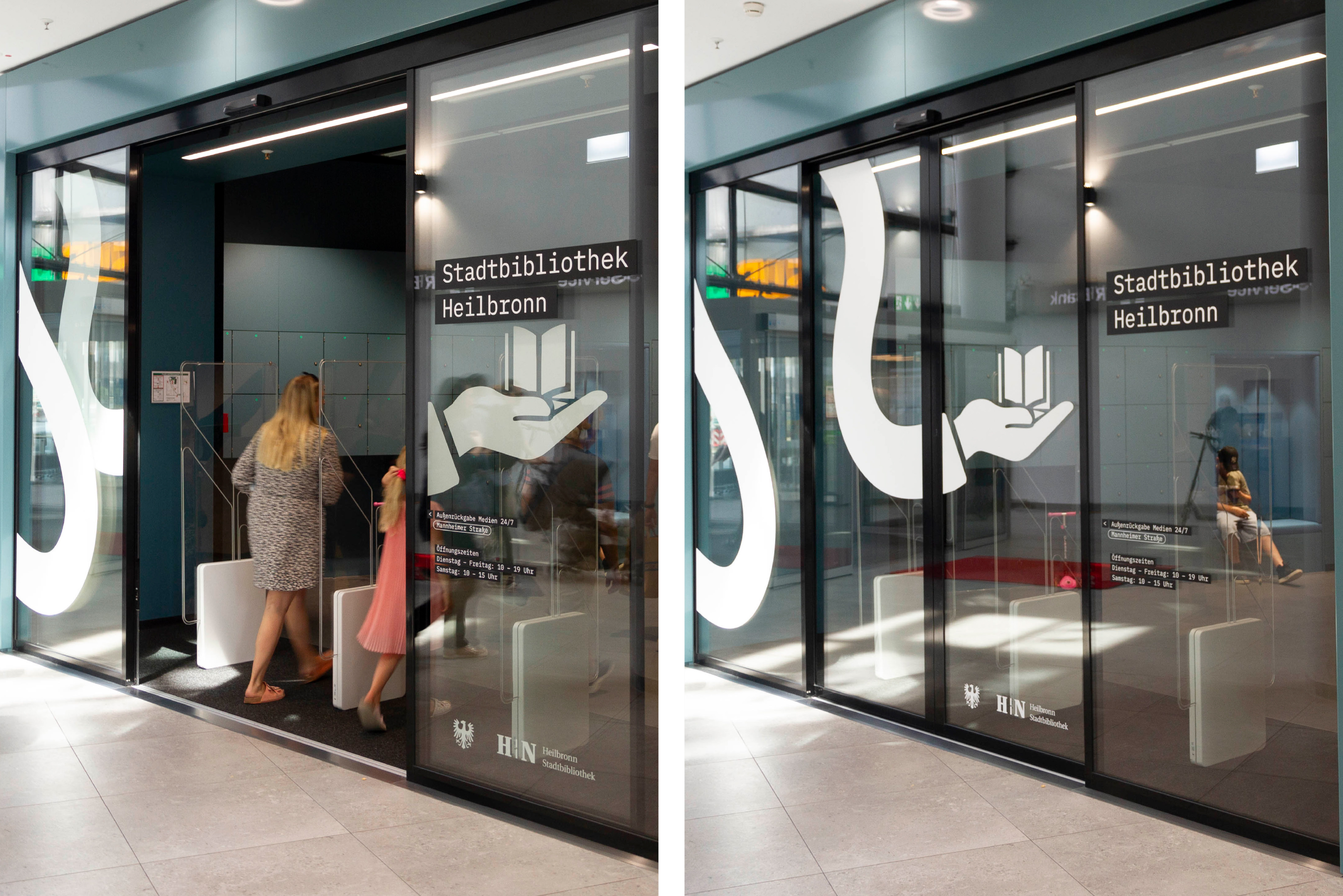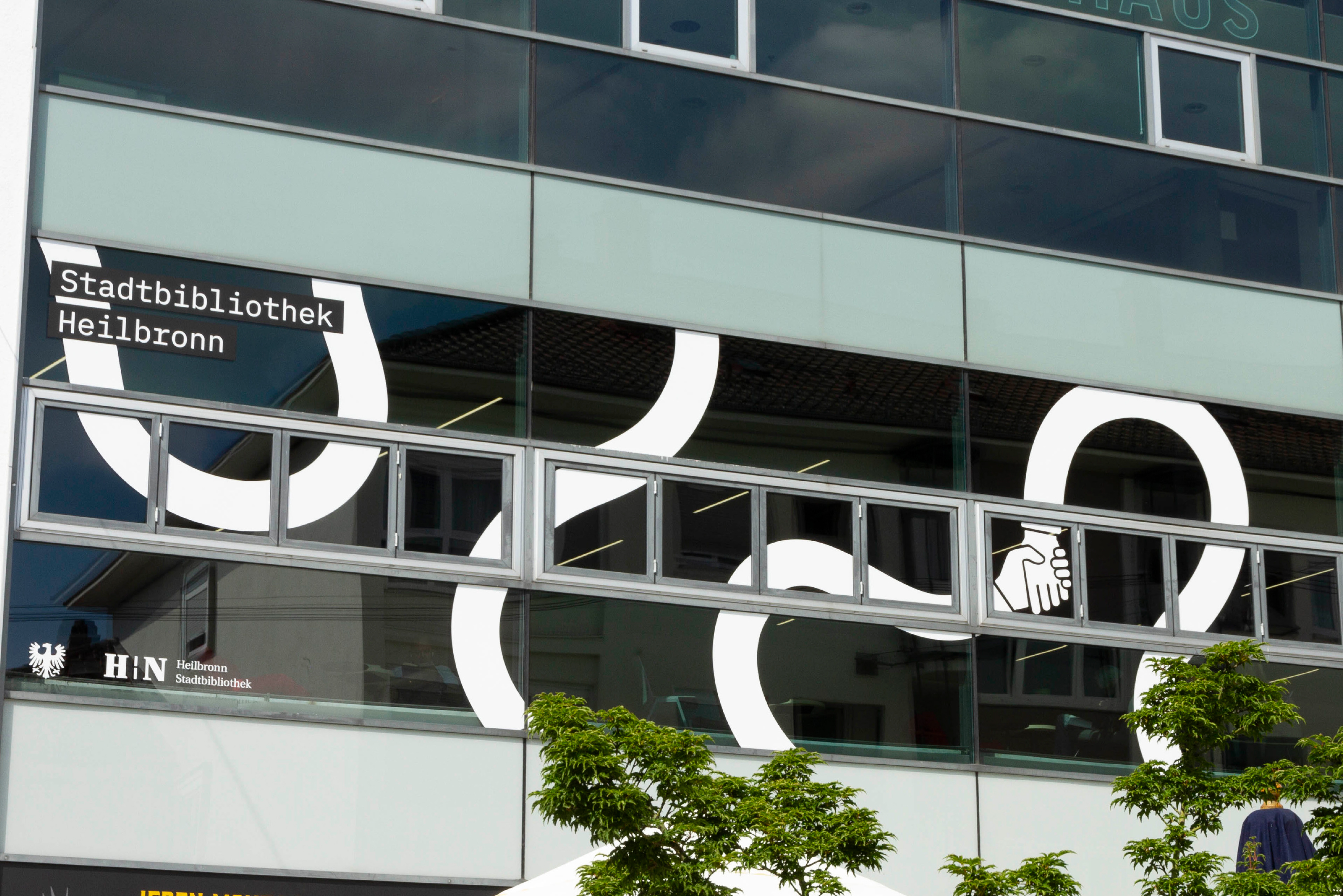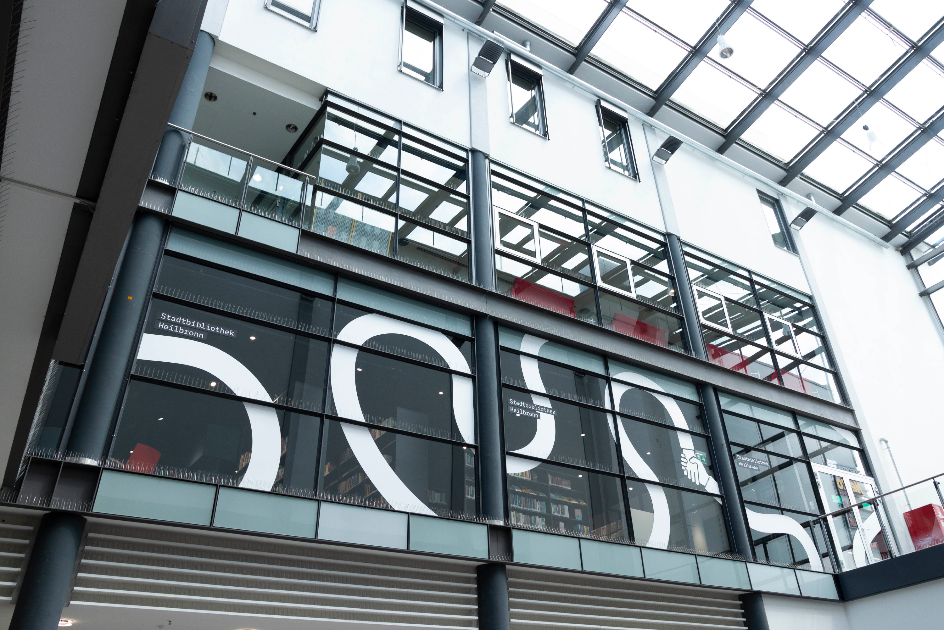 Nach einer grundlegenden, zwei Jahre währenden Sanierung präsentiert sich die Stadtbibliothek Heilbronn außen und innen in neuem Kleid. Zentrale und komplexe Aufgabenstellung für gruppe sepia war die Modernisierung des Leitkonzepts — in enger Zusammenarbeit mit dem Team der Stadtbibliothek. Eine „monospaced“ Type (Stil: Schreibmaschine) dominiert nun das Schriftbild. Größte Aufmerksamkeut galt der Funktionalität des Orientierungsplans anhand dessen Besuchende sich im Labyrinth von Gängen und Regalen leichten Zugang zu über 200.000 Medien verschaffen können. Einprägsam und dazu passend zieren Fenster und Wände schlangenartig sich windende Arme und Hände.